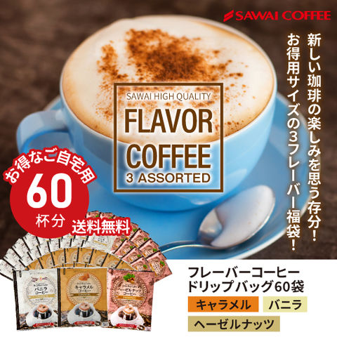 送料無料 フレーバードリップバッグコーヒー お試3種60杯分(コーヒー/珈琲/ドリップコーヒー/ドリップパック/個包装/キャラメル/バニラ/ヘーゼルナッツ/フレーバーコーヒー/送料込)