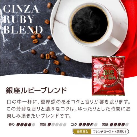 | 内容量 | ・銀座ゴールドブレンド 8g×10袋 ・銀座ダイヤブレンド 8g×10袋 ・銀座ブレンドアクア 8g×10袋 ・銀座ルビーブレンド 8g×10袋 |