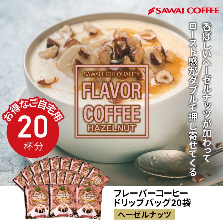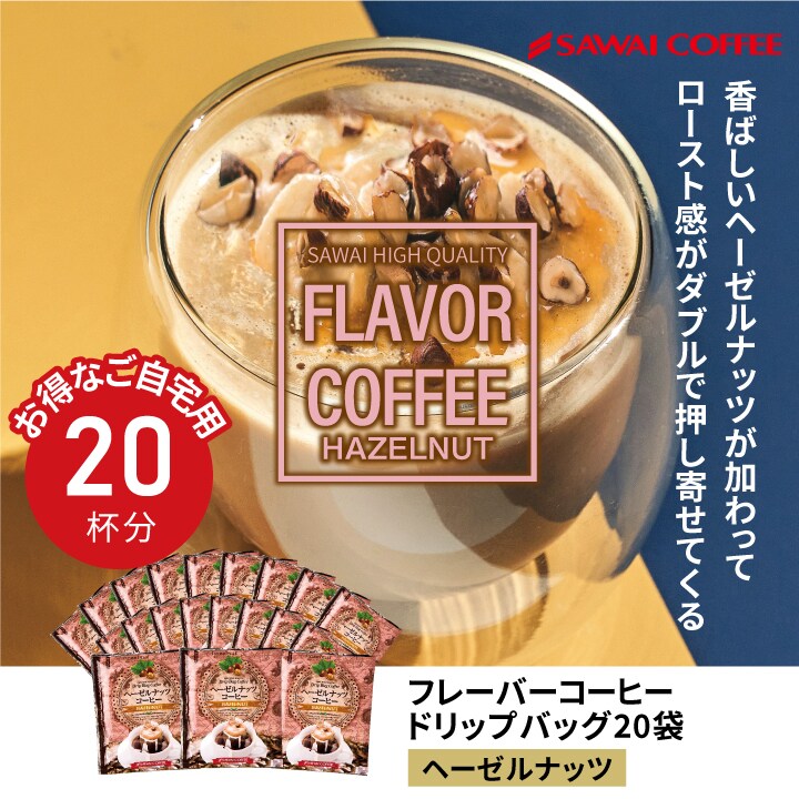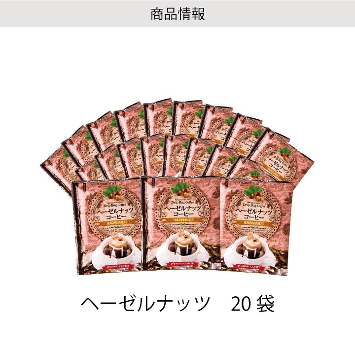 フレーバードリップバッグコーヒー ヘーゼルナッツ20杯分(コーヒー/珈琲/ドリップコーヒー/ドリップパック/個包装/送料別)