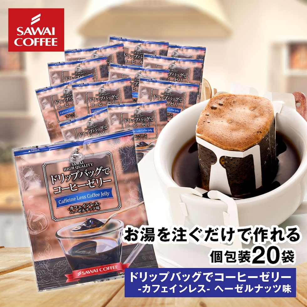 ドリップコーヒー ドリップバッグ コーヒー お試し 個包装 ドリップバッグでコーヒーゼリー カフェインレス ヘーゼルナッツ 9g ×20袋 澤井珈琲 ドリップパック 20杯分 珈琲 セット