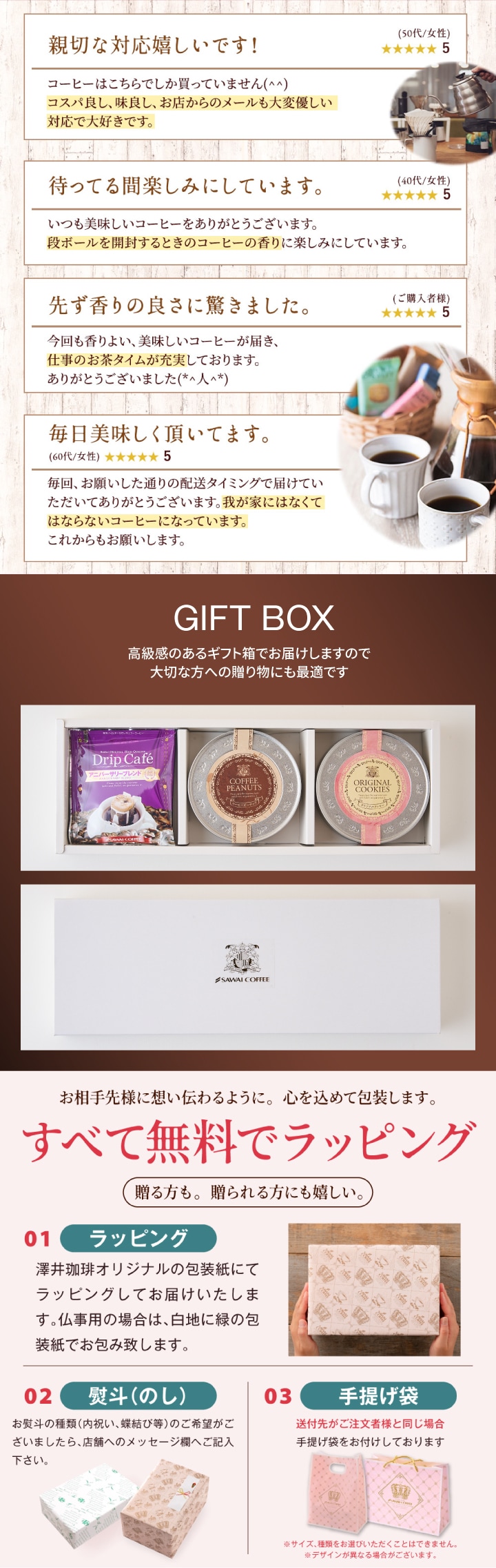 | 商品名 | 心が温まる 澤井珈琲のドリップバッグ&お菓子ギフト |