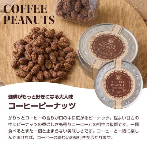 | 内容量 | ・アニバーサリーブレンド 8g×3袋 ・クッキー(コーヒー味)60g ・コーヒーピーナッツ 100g |