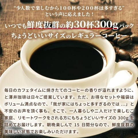こんな方にオススメです ・一人暮らしや少人数のご家庭の方:約30杯分の丁度良い量で無駄なくお楽しみ頂けます。