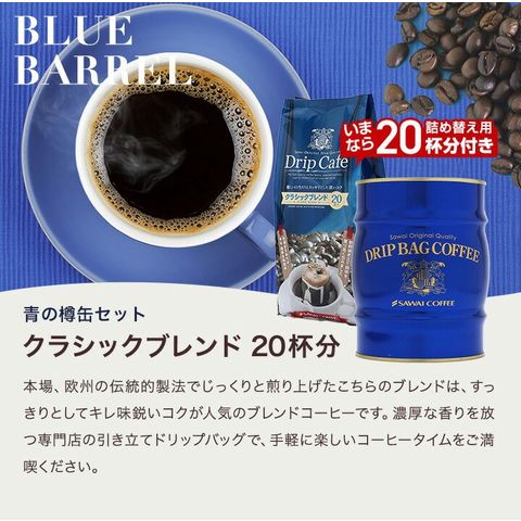 バレンタイン コーヒーギフト 送料無料 樽缶 ドリップバッグ セット【青】※ラッピング無料(ギフト/贈り物/プレゼント/ ドリップコーヒー/クラシックブレンド/内祝い/送料込) 内祝い プレゼント ギフトセット 贈答品 冬ギフト