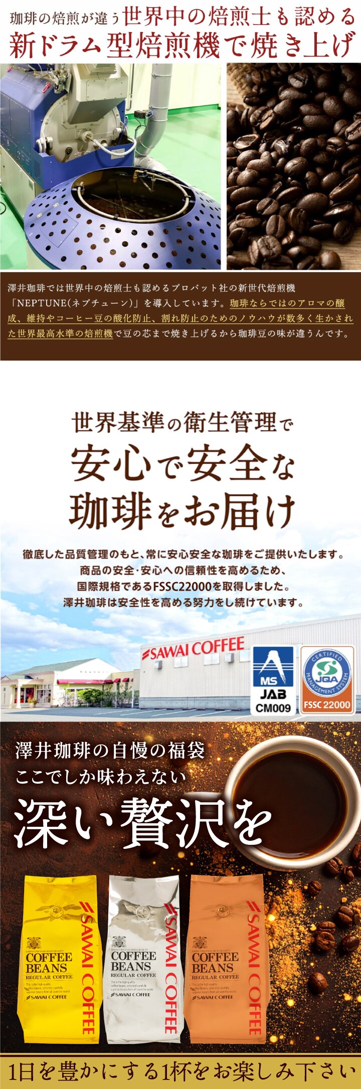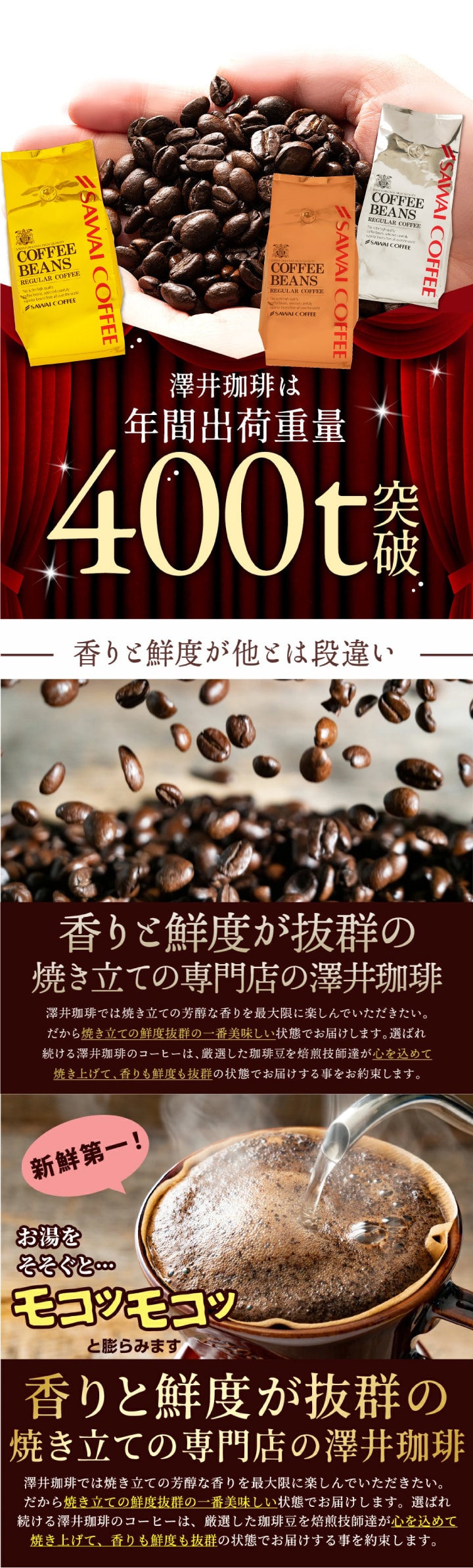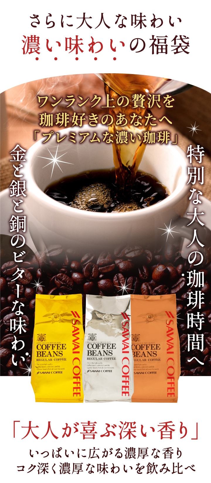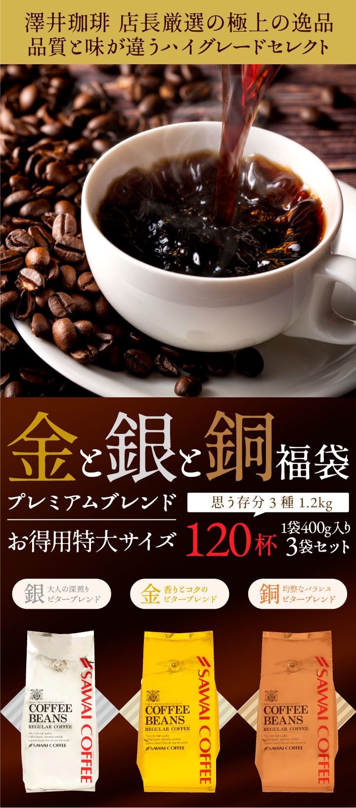 【豆のまま】送料無料 コーヒー コーヒー豆 珈琲豆 "コク深く香る贅沢珈琲" 澤井珈琲 金 銀 銅 のビターブレンド 飲み比べ 福袋 400g×3袋 濃い味 ビター コク深い 香り高い 大容量