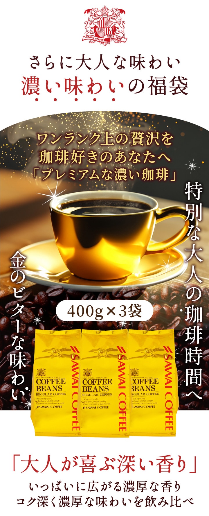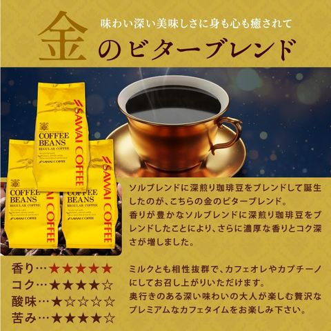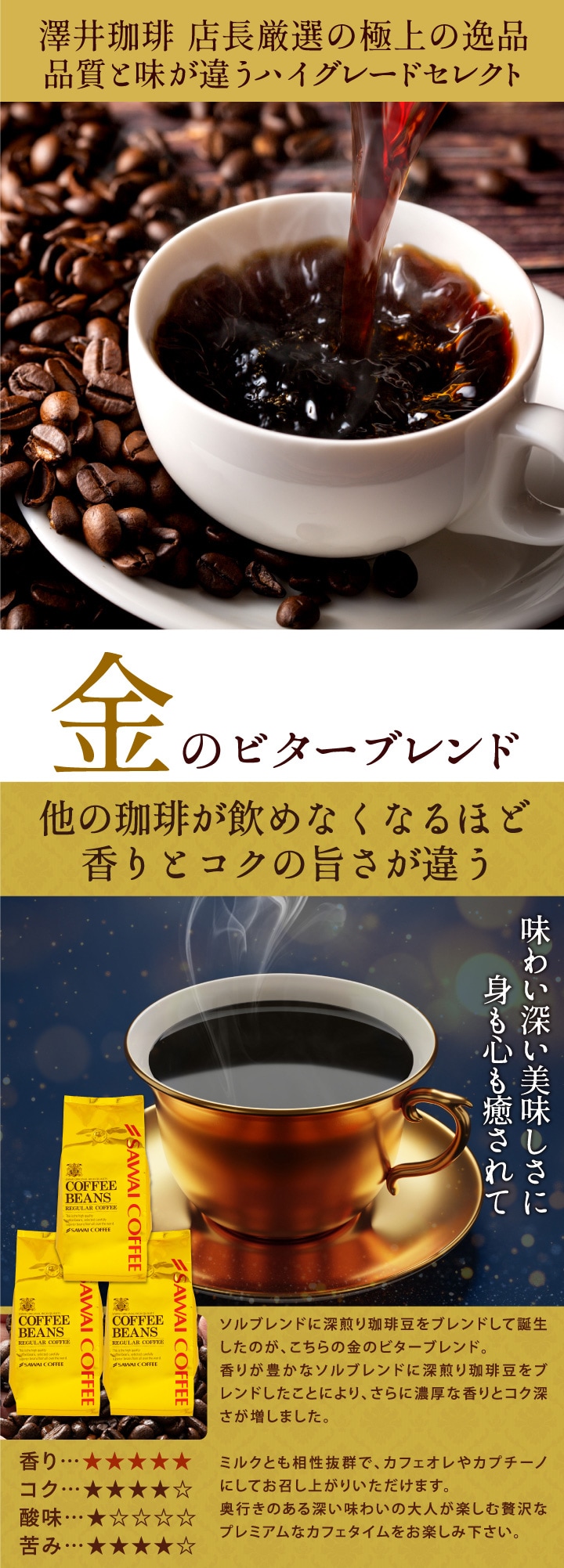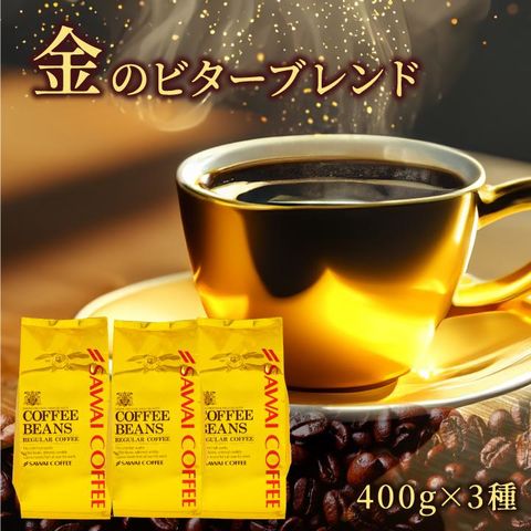 【豆のまま】送料無料 コーヒー コーヒー豆 珈琲豆 "香り高くコク深い時間" 澤井珈琲 金のビターブレンド 1.2kg セット 400g×3袋 香り強い コク深い 濃い味 苦味しっかり 毎日飲める 飽きない 飲みごたえ