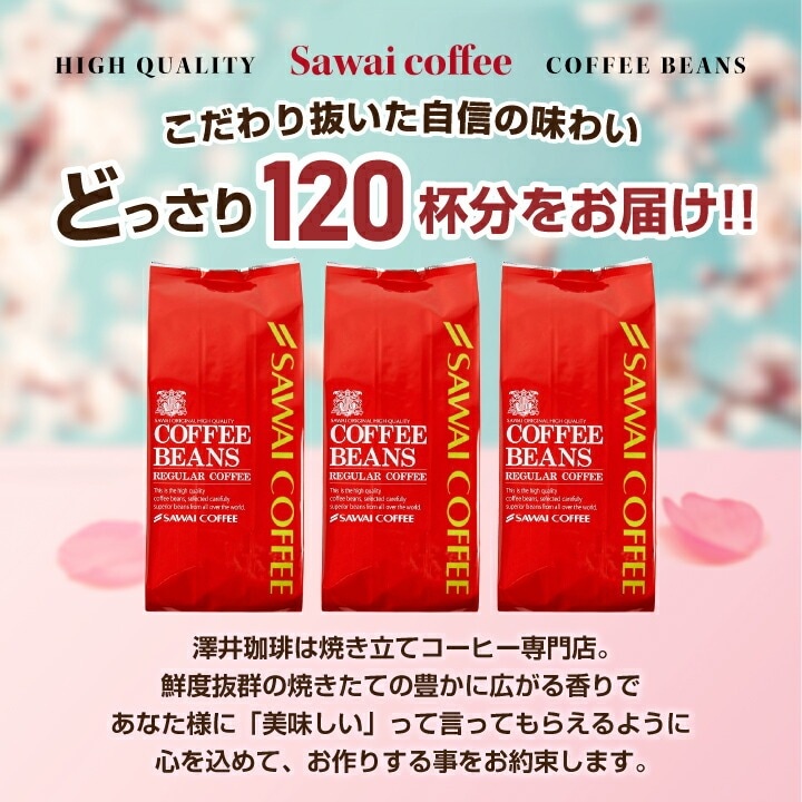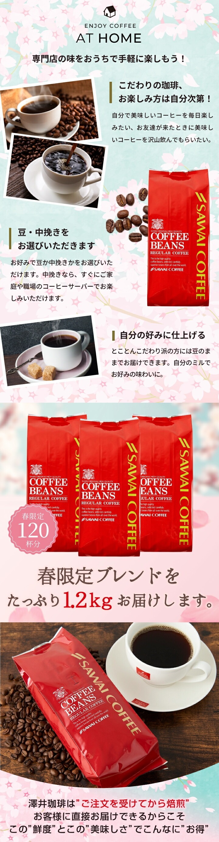 【中挽き】焙煎したて コーヒー粉 1.2kg 珈琲粉 送料無料 コーヒー 福袋 大容量 400gx3袋 コーヒー専門店 春限定 春風ブレンド 120杯分 セット 澤井珈琲