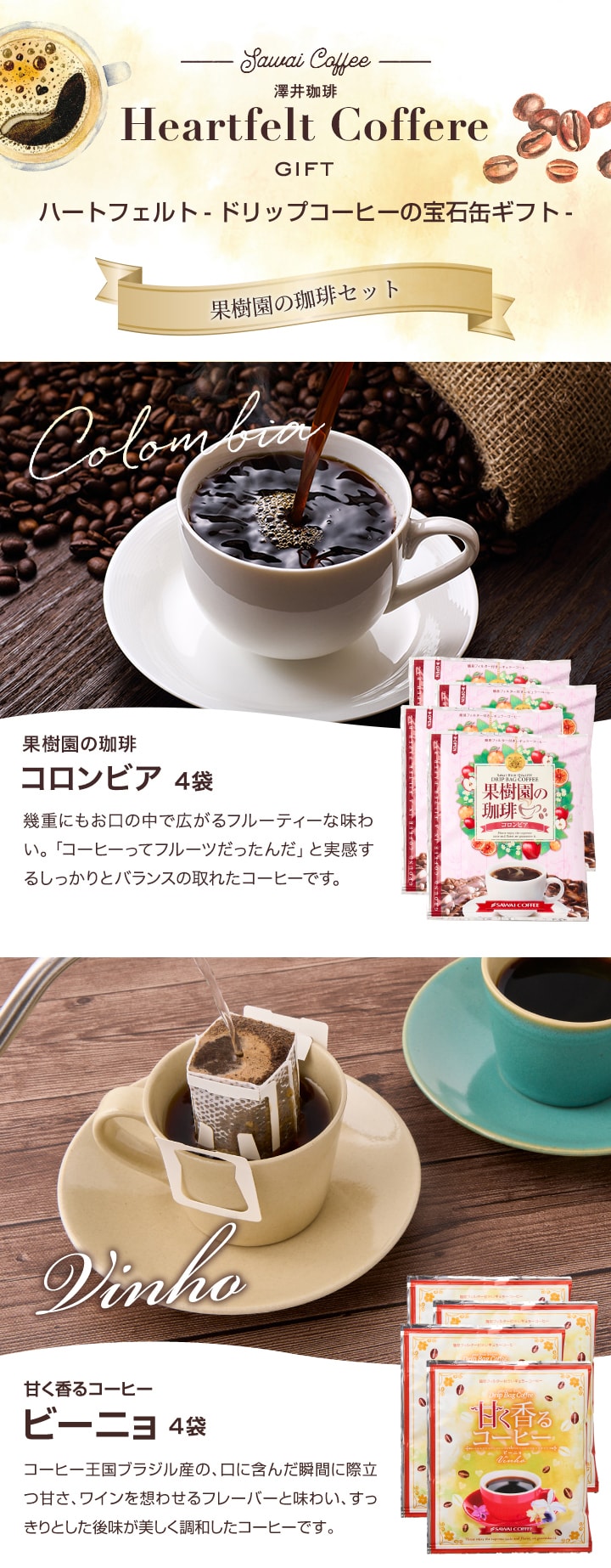 コーヒーギフト コーヒー 珈琲 プレゼント "フルーティに香るおしゃれ缶入りドリップバッグ " 澤井珈琲 ハートフェルト ドリップコーヒー ギフトボックス プチギフト ほっと一息 おしゃれ ホワイトデー