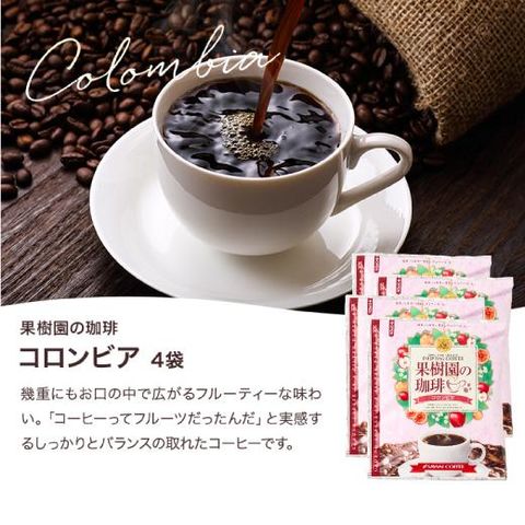 | 内容量 | ・果樹園の珈琲コロンビア 8g×4袋 ・甘く香るコーヒー ビーニョ 8g×4袋 |