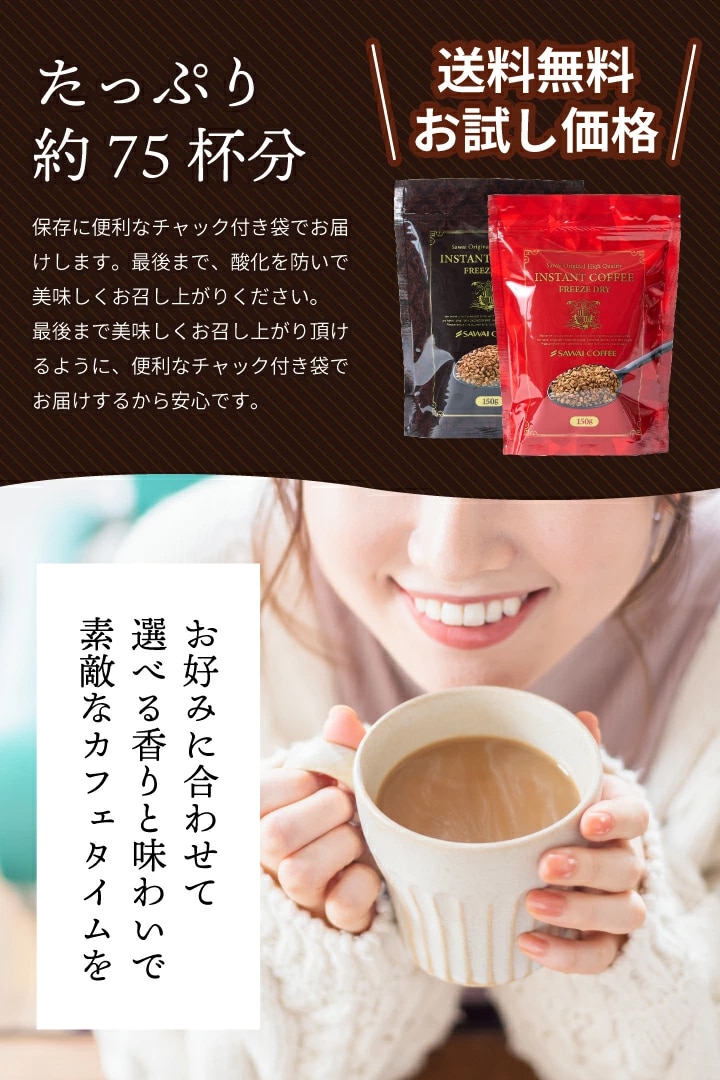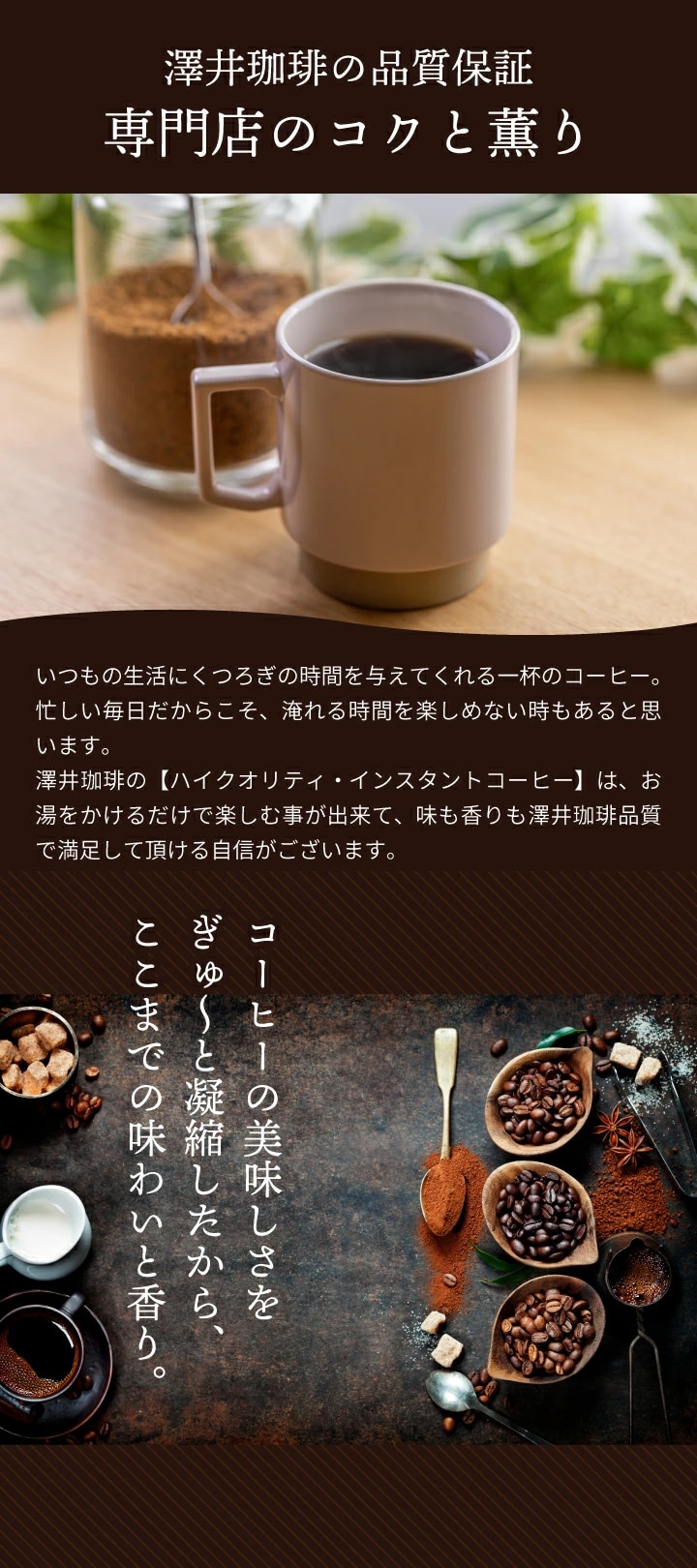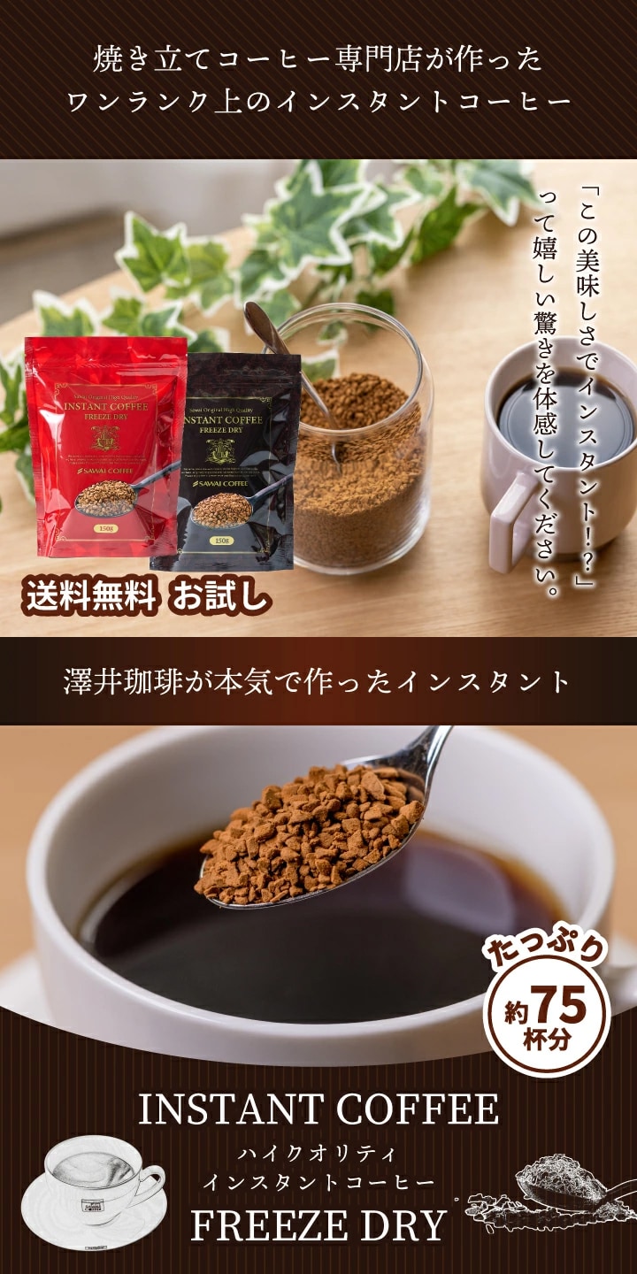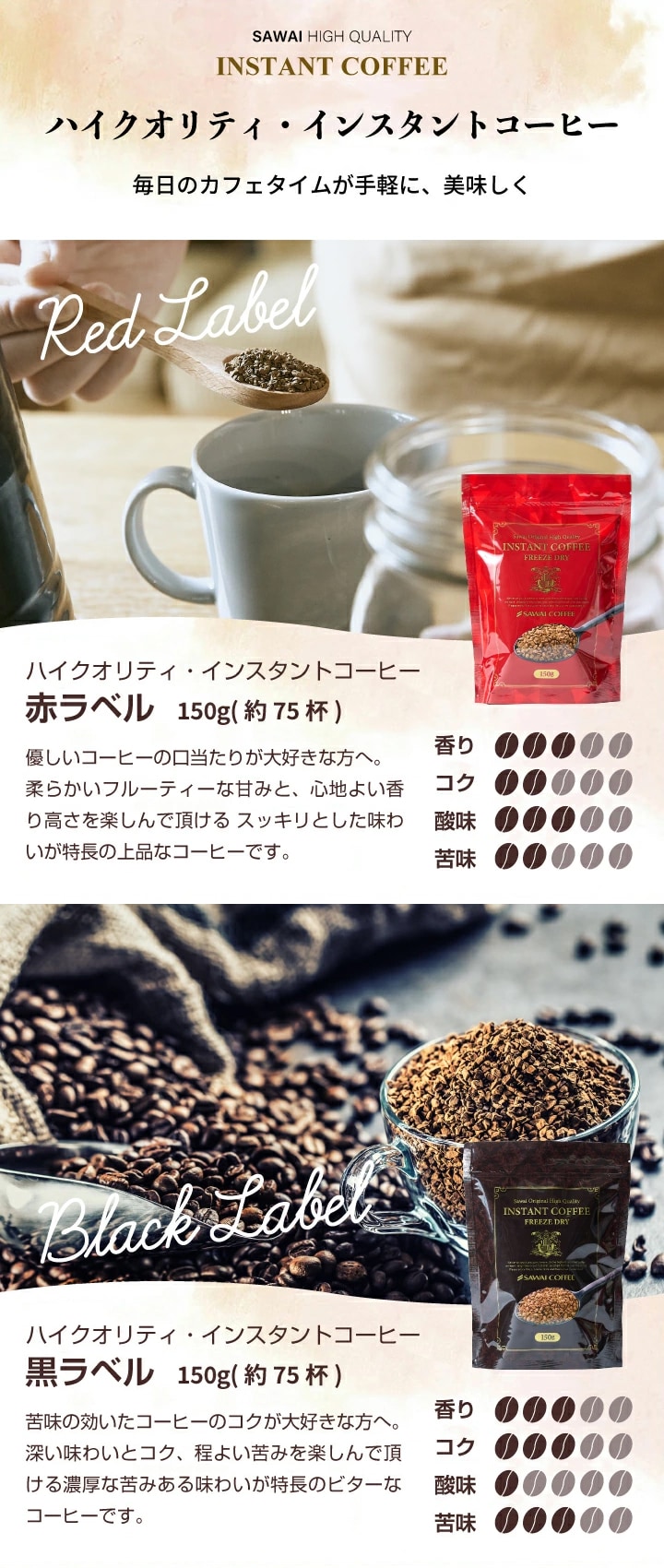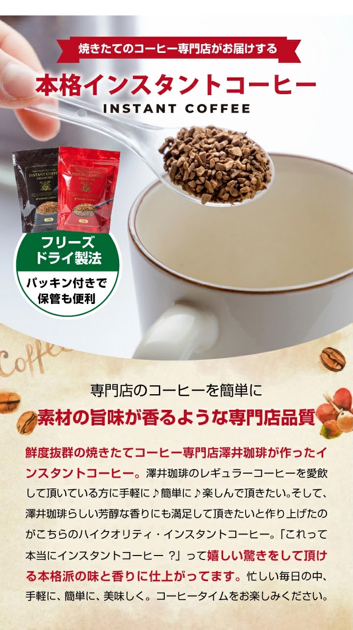 | 商品名 | コーヒー専門店の品質!澤井珈琲のインスタントコーヒー150g 75杯分 赤 黒 |