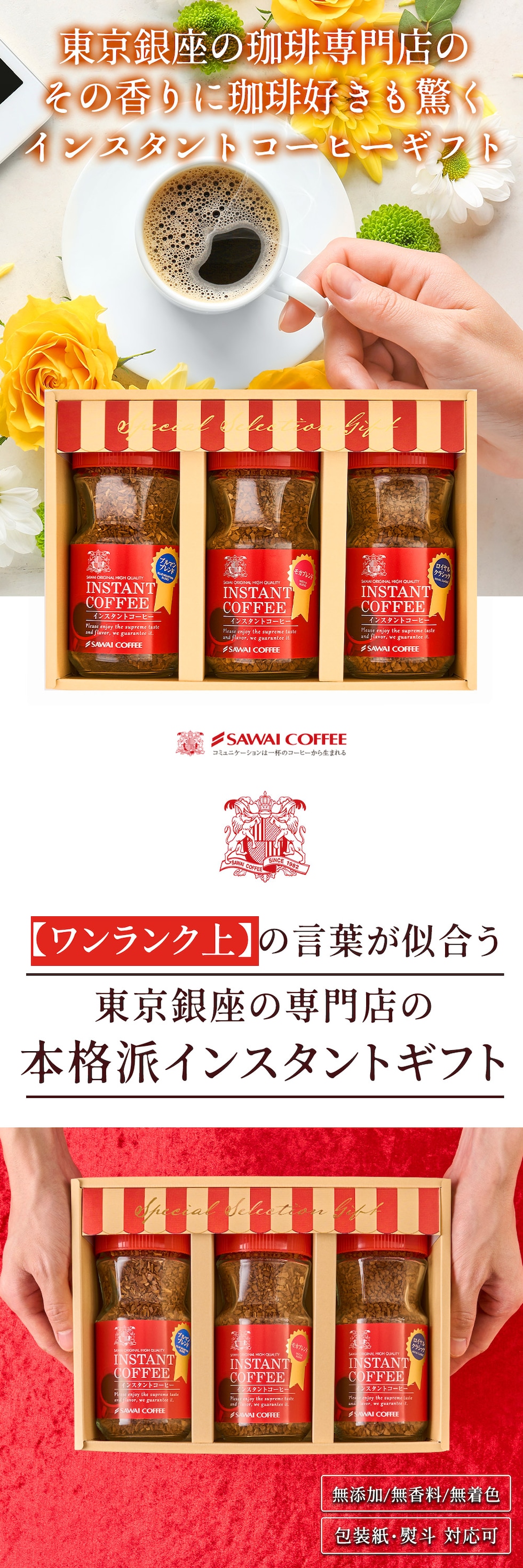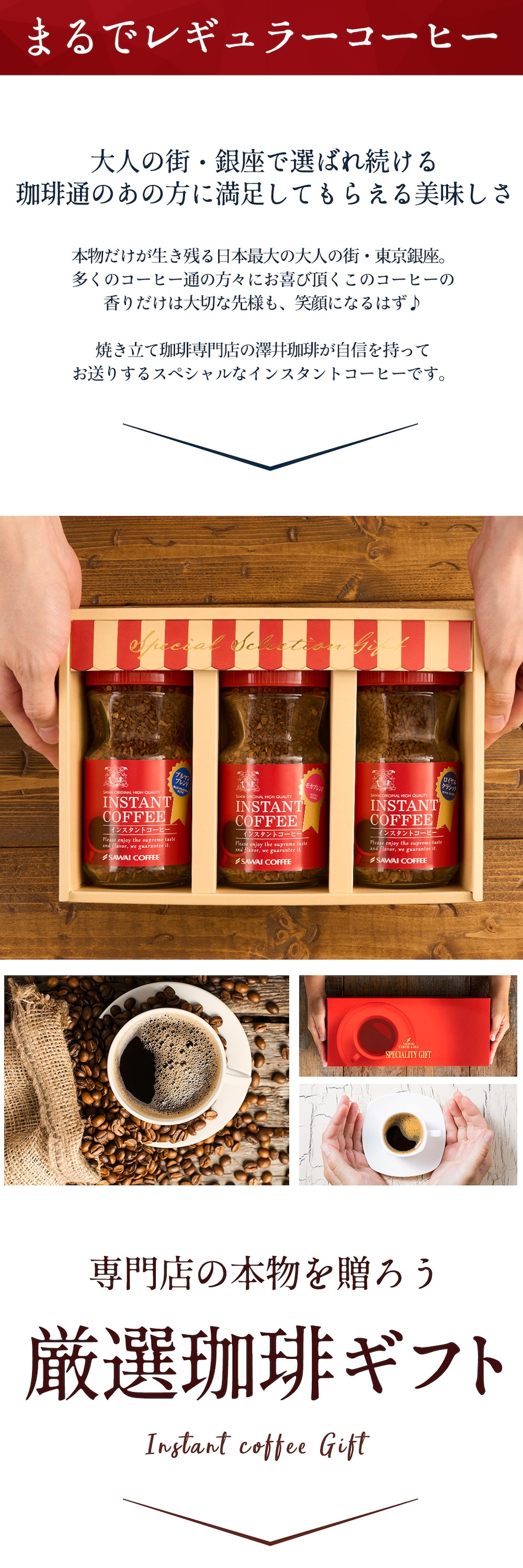 お年賀 コーヒーギフト 送料無料 特選インスタント3個セット(ギフト/プレゼント/おしゃれ/かわいい/インスタント/珈琲/フリーズドライ/粉/顆粒/ブルマンブレンド/ブルーマウンテン/モカブレンド/ラッピング無料/送料込) 内祝い プレゼント ギフトセット 贈答品 冬ギフト