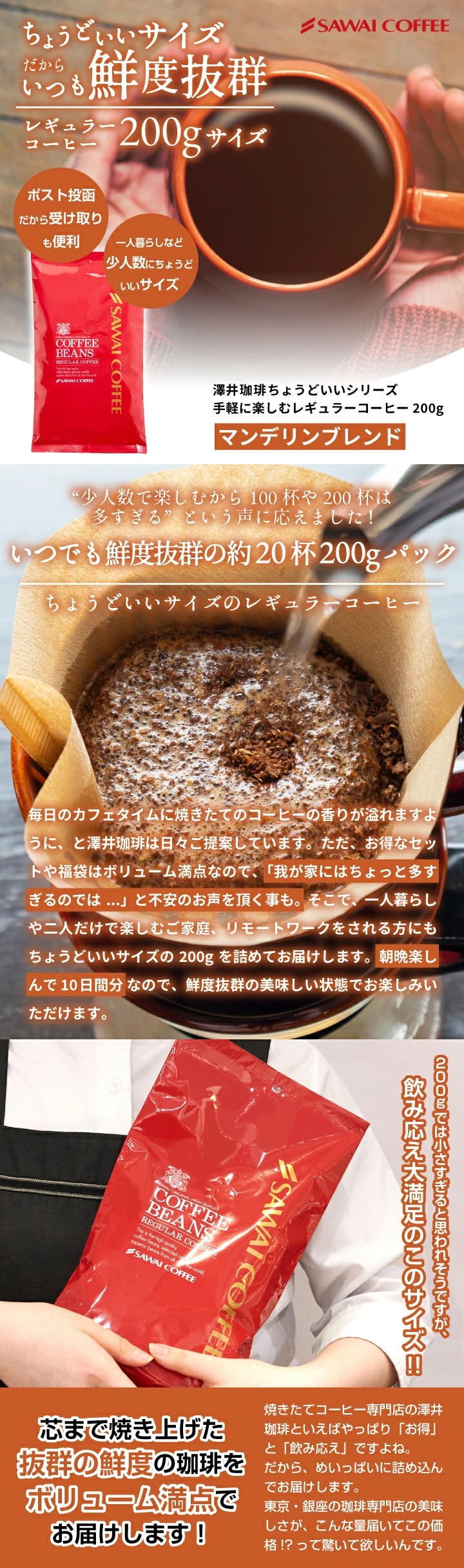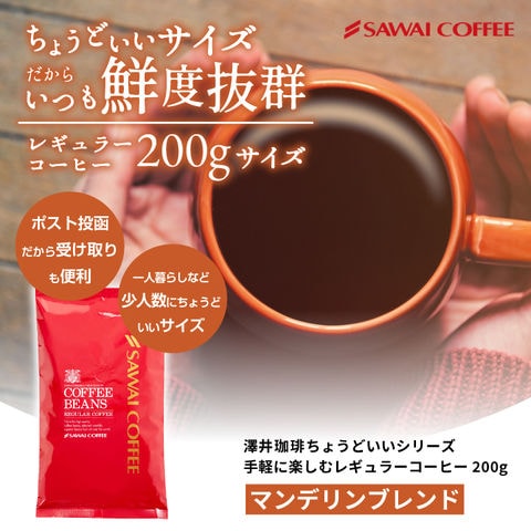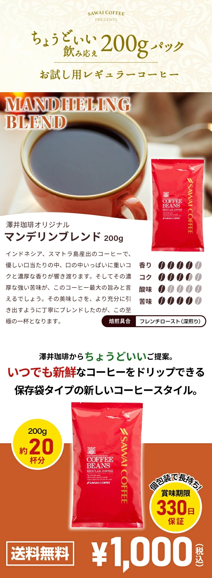焙煎したて コーヒー豆 コーヒー粉 【豆のまま】 1000円ポッキリ 送料無料 メール便 澤井珈琲 少量お試し 【飲みきりサイズ レギュラーコーヒー マンデリン・ブレンド】 約20杯 1000円プレゼント