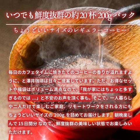 コーヒーの香りを楽しみたい方に 多くのレビューで、コーヒーの香りが良いと評判です。焙煎したての香りが楽しめるので、香り高いコーヒーを求めている方におすすめです。自宅で香りを楽しみながらコーヒーを淹れる時間を過ごしたい方にぴったりです。 少量ずつ新鮮なコーヒーを楽しみたい方に 200gというちょうど良いサイズが、少人数や一人暮らしの方に好評です。鮮度を保つ保存袋に入っており、最後の一杯まで新鮮な状態で楽しめます。少量ずつ購入して新鮮なコーヒーを楽しみたい方におすすめです。 贈り物としても 友人や家族への贈り物としても人気があります。コーヒー好きな方へのプレゼントとして購入し、喜ばれたというレビューが多く見られます。贈り物として特別なコーヒーを探している方にぴったりです。 |