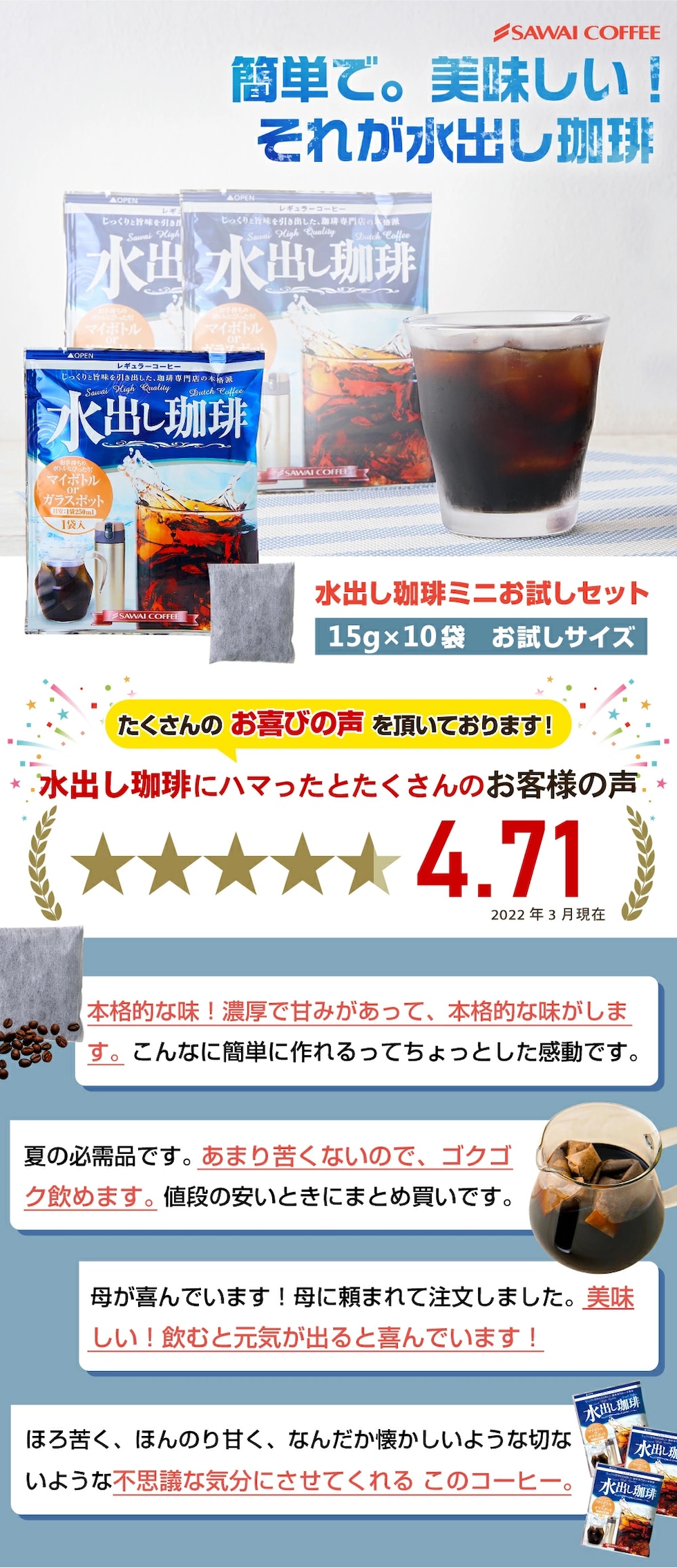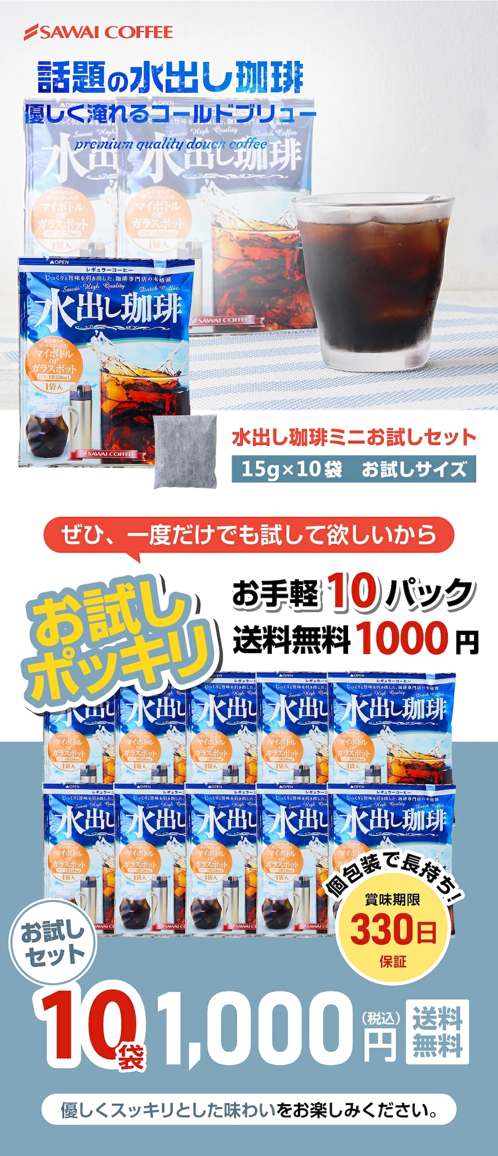 送料無料 1000円ポッキリ コーヒー 珈琲 "手間なく淹れる癒しの水出し珈琲パック " 澤井珈琲 アイスコーヒーパック 個包装 水出しコーヒー 15g×10袋 お試し セット 飲みきりサイズ 手軽
