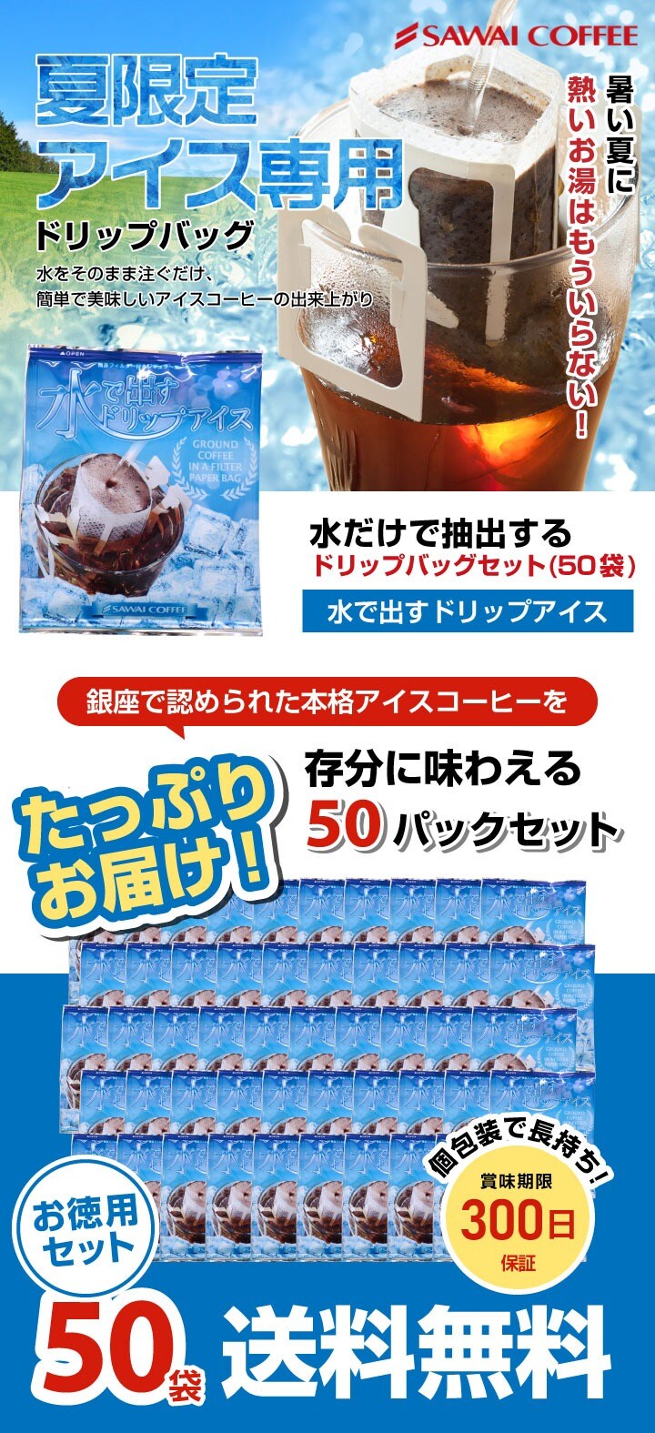 夏限定 ドリップバッグ 送料無料 福袋 水出しコーヒー 水出しアイスコーヒー コールドブリュー 50袋 50杯分 ドリップコーヒー 個包装 珈琲専門店 澤井珈琲