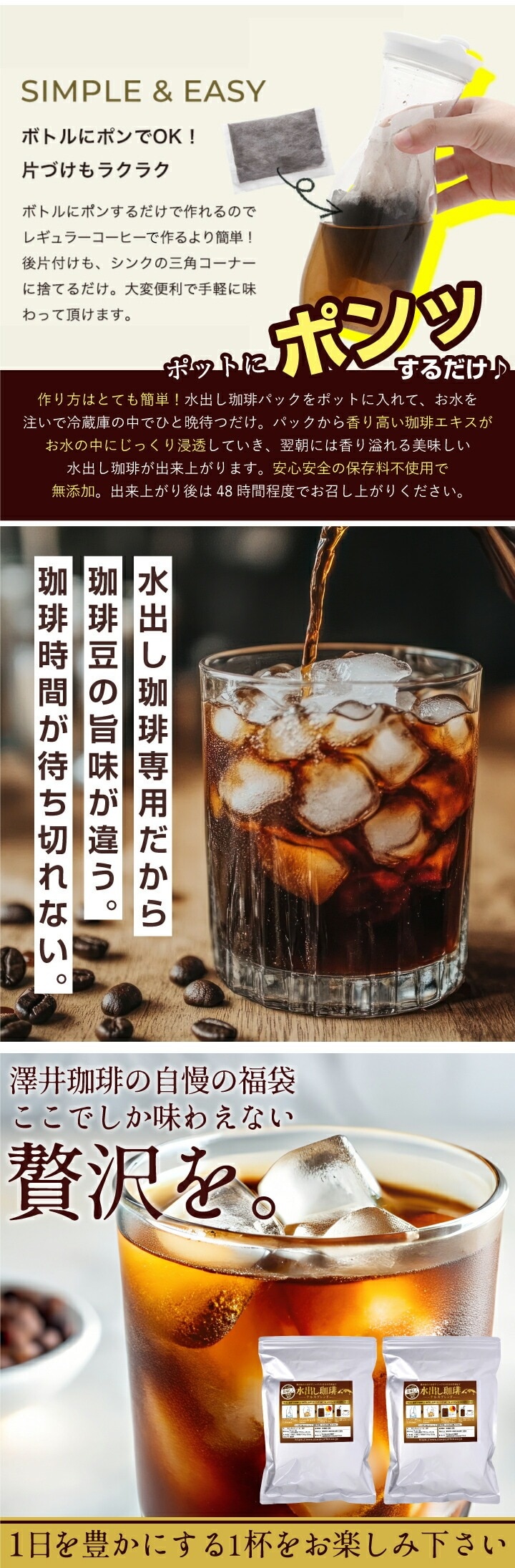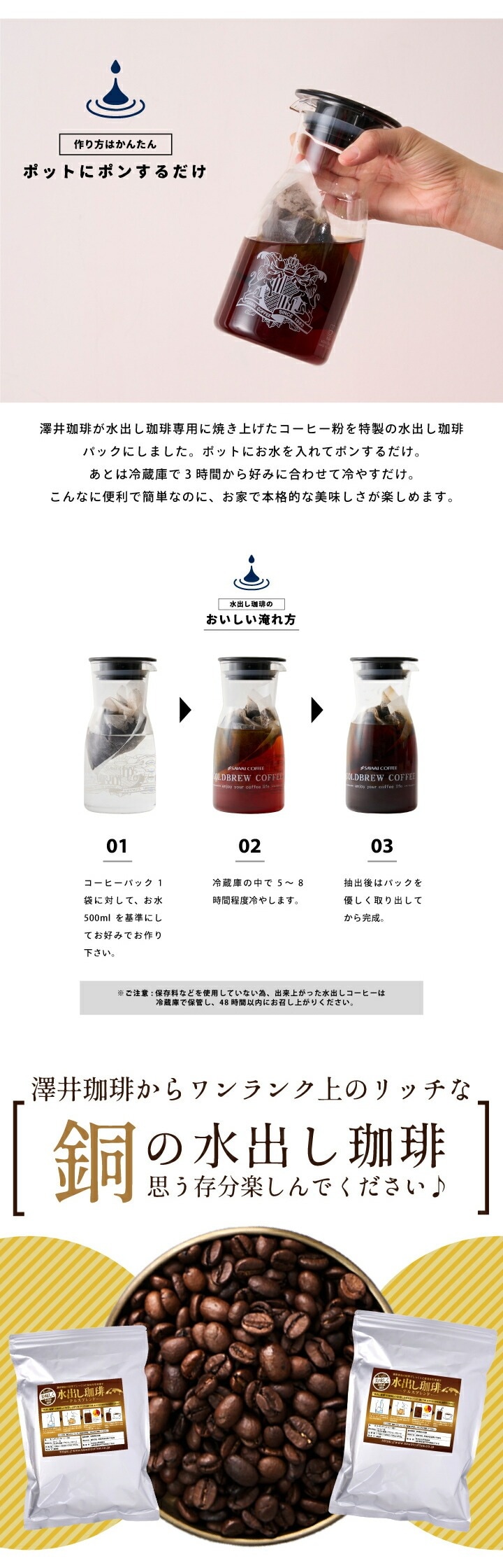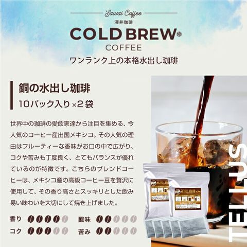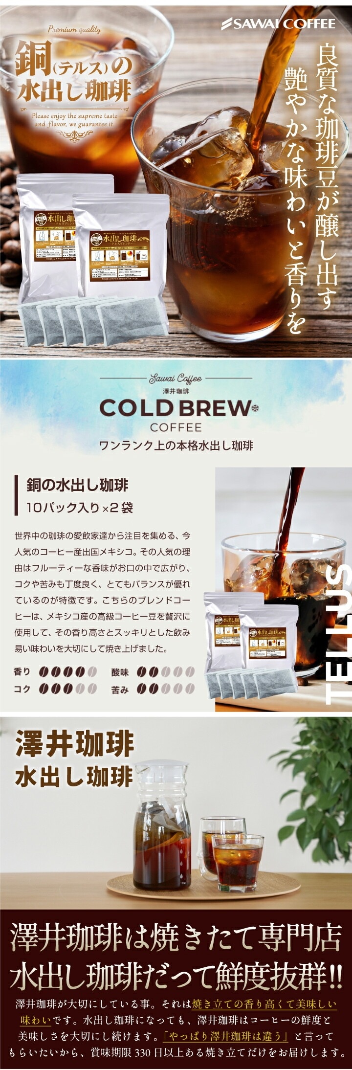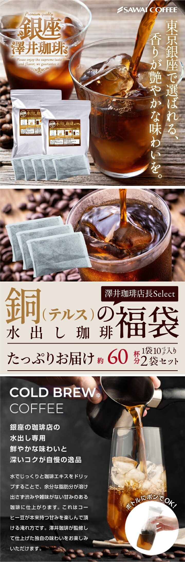 澤井珈琲 水出し コーヒー 10パック 2袋 粉 送料無料 銅の水出しコーヒー福袋 テルスブレンド 60杯分