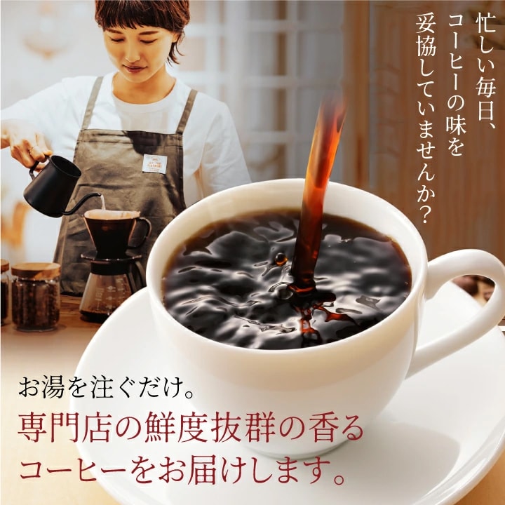 お湯を注ぐだけで、専門店の深煎りコーヒーが完成