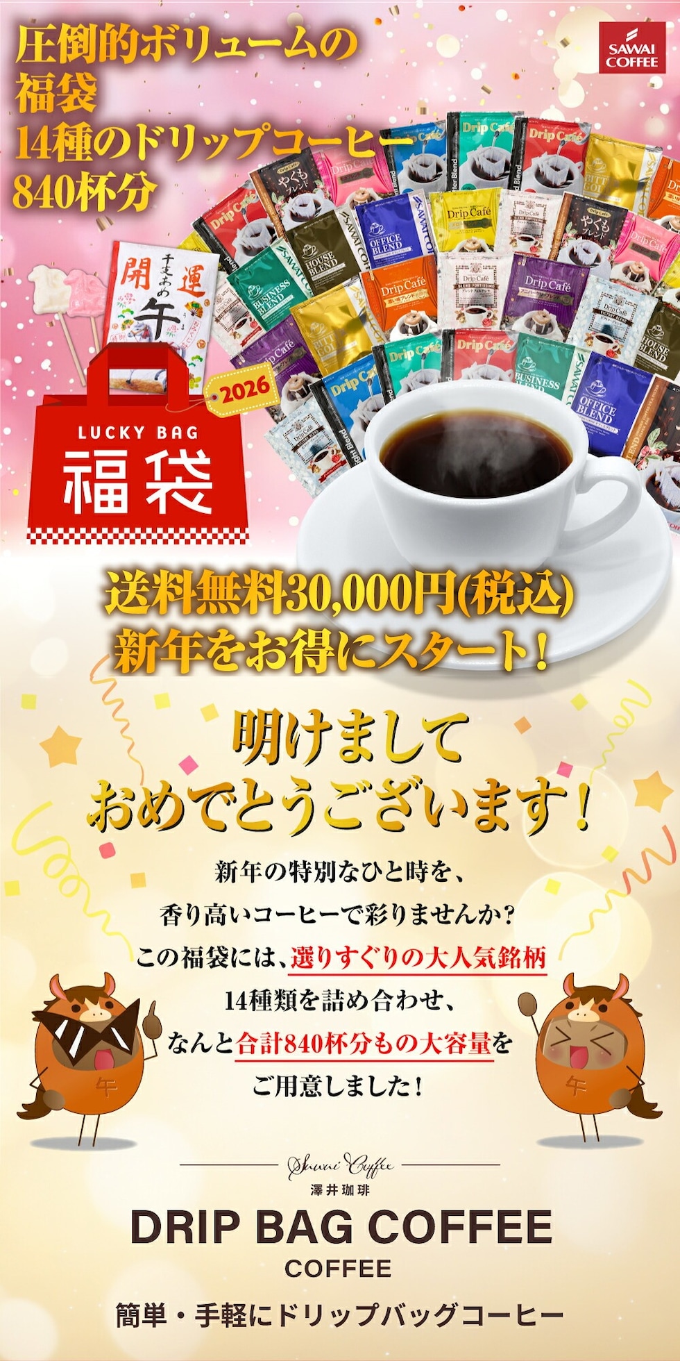 | 商品名 | 初売りセール限定 ドリップバッグ14種840杯福袋 |