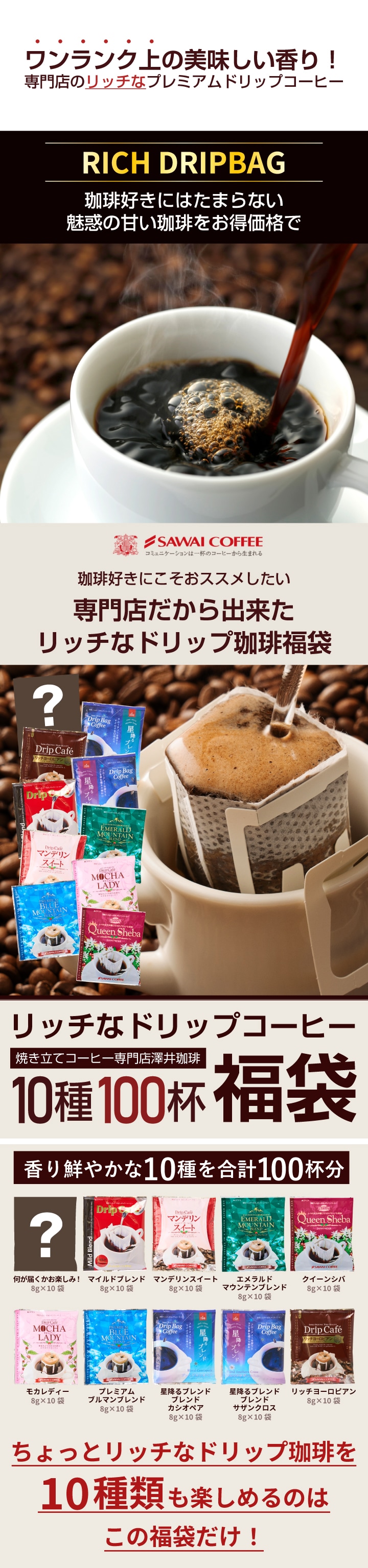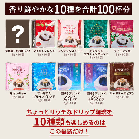 送料無料 リッチなドリップコーヒー福袋(ドリップバッグ/福袋/10種/100杯分/スペシャリティー/送料込)