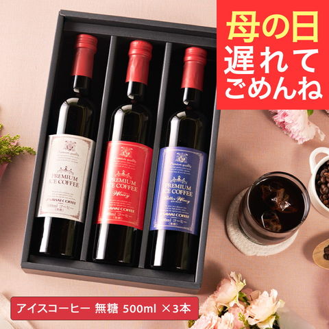 遅れてごめん 母の日ギフト2025 アイスコーヒー ギフト プレミアム アイスコーヒー 選べる 500ml 3本 澤井珈琲ギフトセット 【赤+青+カフェインレスセット】
