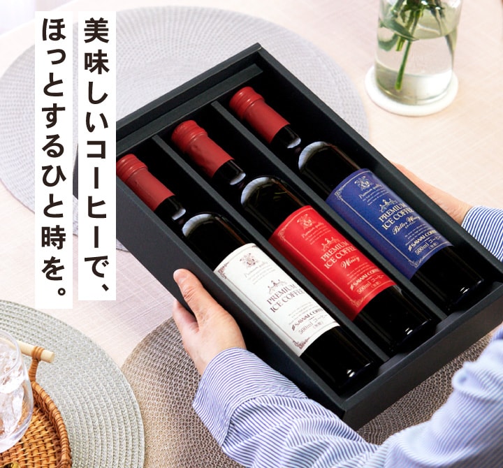 | こんな方にオススメです | 1. お中元としての贈り物: 特に暑い夏にはアイスコーヒーが喜ばれるので、普段はあまり買わないような高級感のあるアイスコーヒーを贈ることで、受け取った方が特別な気分を味わえます。 2. 父の日や母の日のプレゼント: 特別な日の贈り物として、見た目がおしゃれで高級感があり、コーヒー好きの方にとても喜ばれています。 3. お誕生日や特別なお祝い: ワインのような見た目のボトル入りで、おしゃれで高級感があるため、贈り物として喜ばれます。 |