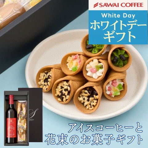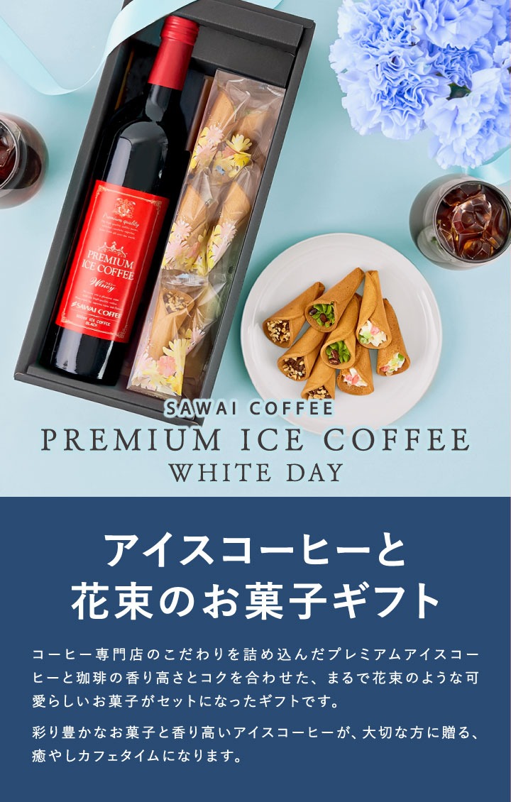 ホワイトデー お返し 卒業祝い 内祝い コーヒー ギフト プレゼント スイーツ お菓子 珈琲 焼き菓子 花彩つむぎ 贈答品 飲み物 実用的 coffee gift プレミアムアイスコーヒーとお菓子の花束セット 澤井珈琲