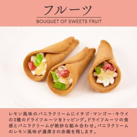 | 内容量 | ・フルーツ ×3個 ・チョコ ×3個 ・抹茶 ×2個 |