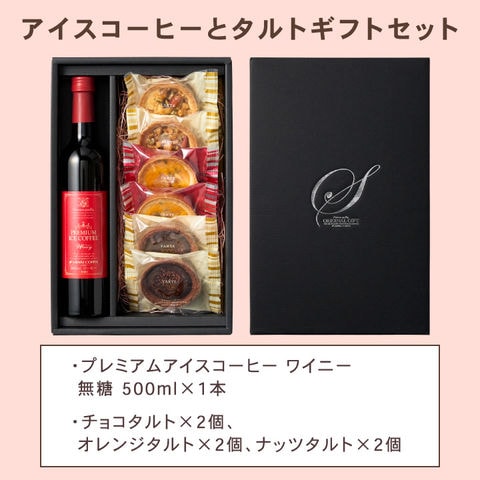 | セット内容 | ・プレミアムアイスコーヒー ワイニー 無糖 500ml×1本(赤ラベル) ・チョコタルト 2個 ・オレンジタルト 2個 ・ナッツタルト 2個 |