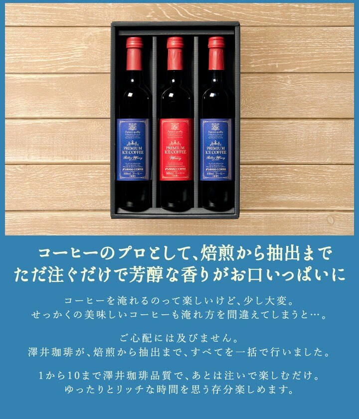 ホワイトデー お返し 2026 ギフト 澤井珈琲 アイスコーヒー リキッド 500ml 3本 瓶 無糖 送料無料 おしゃれ かわいい 高級 贅沢なプレミアムアイスコーヒー3本セット 冷凍便同梱不可
