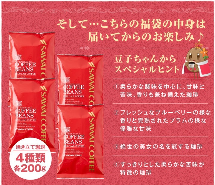 | 商品名 | 中身は届いてからのお楽しみ♪珈琲の女王80杯分福袋 |