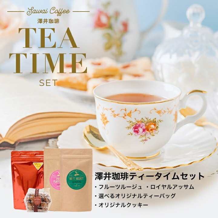 | 澤井珈琲のティータイムセットは、厳選された紅茶と手作りのオリジナルクッキーが楽しめるセットです。紅茶の種類が豊富で、お得に贅沢なティータイムを体験できます。 1. 厳選された紅茶で贅沢なひととき このティータイムセットには、最高級のロイヤルアッサムやフルーツルージュなど、選び抜かれた紅茶が含まれています。紅茶の専門家が自信を持っておすすめする紅茶は、インドやスリランカなど世界的に有名な茶畑から厳選されており、スッと広がる香りと深い味わいが特徴です。おうちで贅沢なひとときを楽しみたい方には、この紅茶がぴったりです。 2. 選べるティーバッグで手軽に美味しさを セットには、オリジナルのティーバッグも含まれており、ノンフレーバー、フルーツフレーバー、おまかせの3種類から選べます。リーフティーの美味しさをそのまま楽しめるよう、細かくカットしてティーバッグに閉じ込めています。手軽に美味しい紅茶を楽しみたい方に、この選べるティーバッグが最適です。 3. 手作りクッキーで紅茶の時間をもっと楽しく 厳選されたアールグレイ茶葉をたっぷり使用したオリジナルクッキーも、このセットの魅力のひとつです。パティシエが丁寧に焼き上げたクッキーは、紅茶の香りが口いっぱいに広がり、大人の味わいを楽しむことができます。紅茶と一緒に楽しむことで、さらに充実したティータイムを過ごせます。 |
