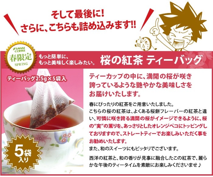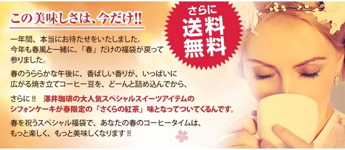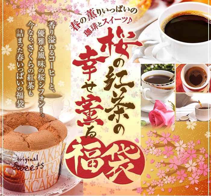 【豆のまま】 桜の紅茶の幸せ薫る福袋 送料無料 コーヒー豆 珈琲豆 セット 春限定 新生活 ティーバッグ シフォンケーキ