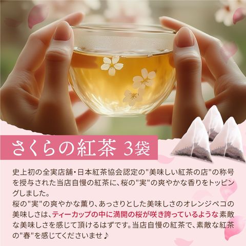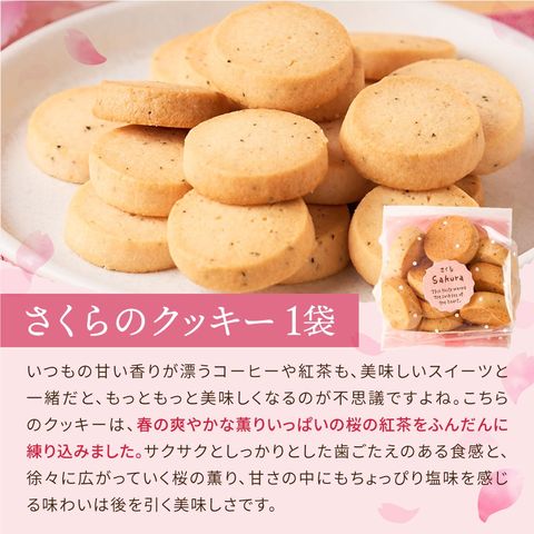 | 内容量 | ・さくらの紅茶 ティーバッグ 2.5g×3個 ・さくらのクッキー 70g×1袋 |