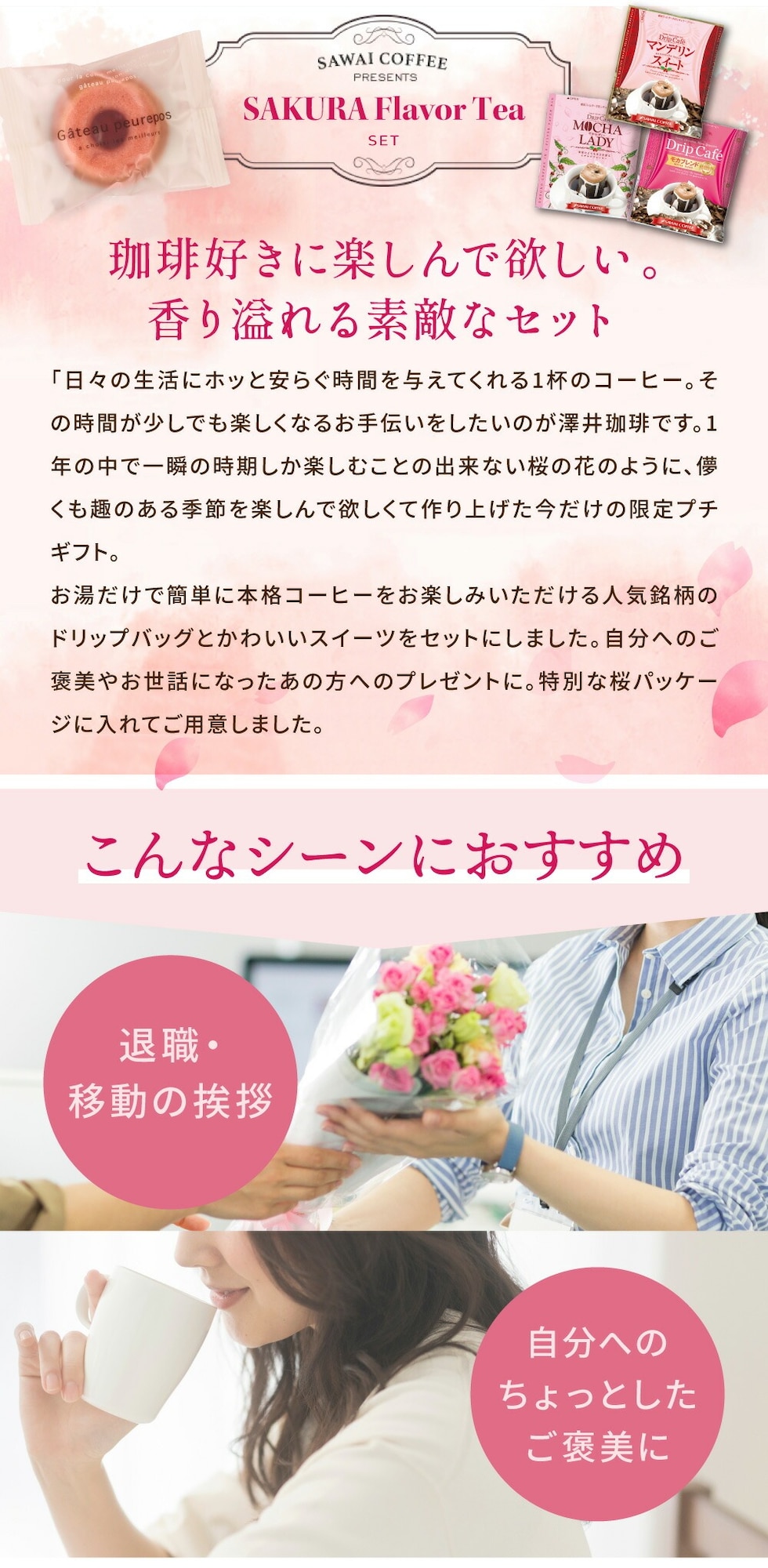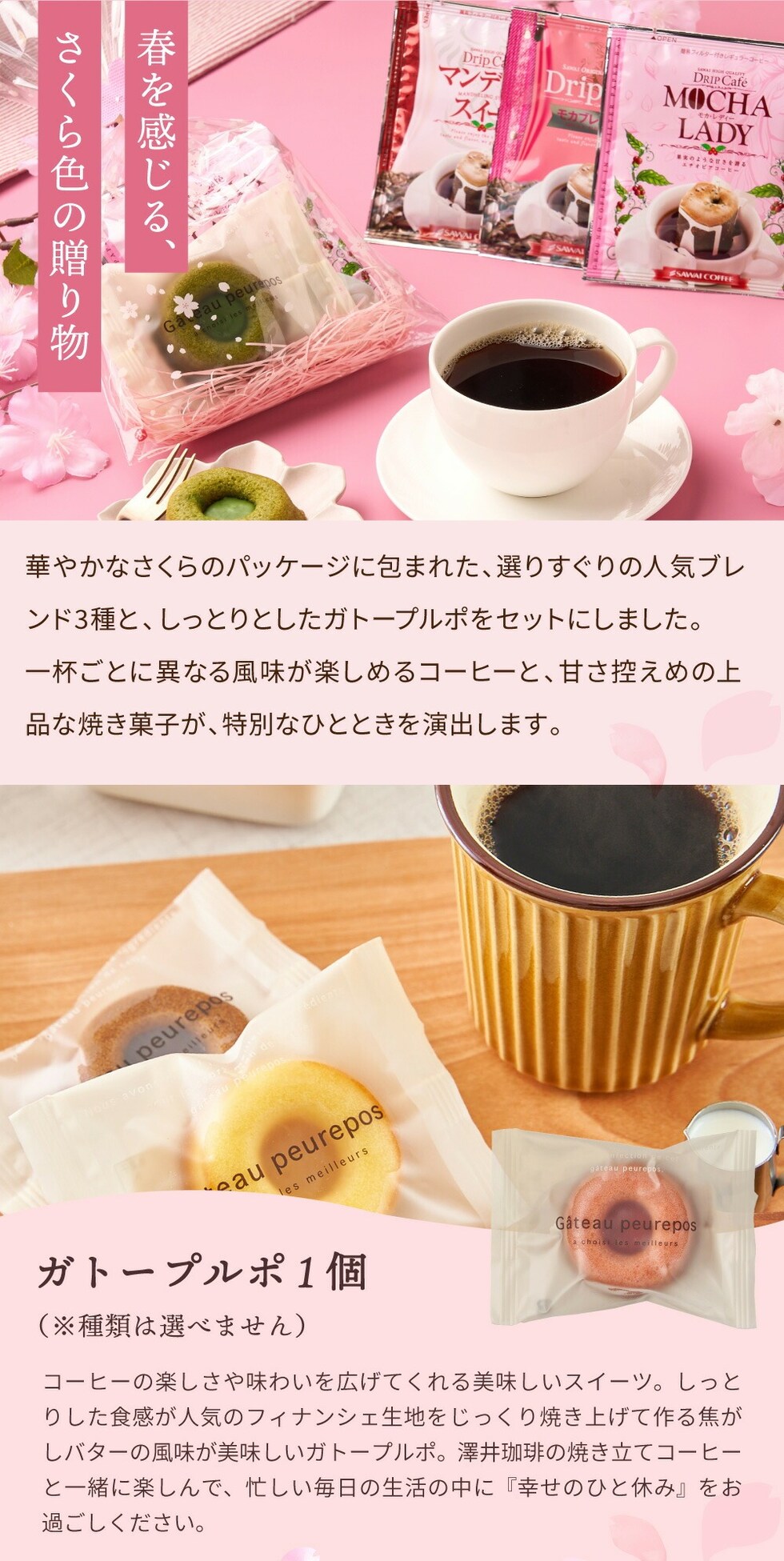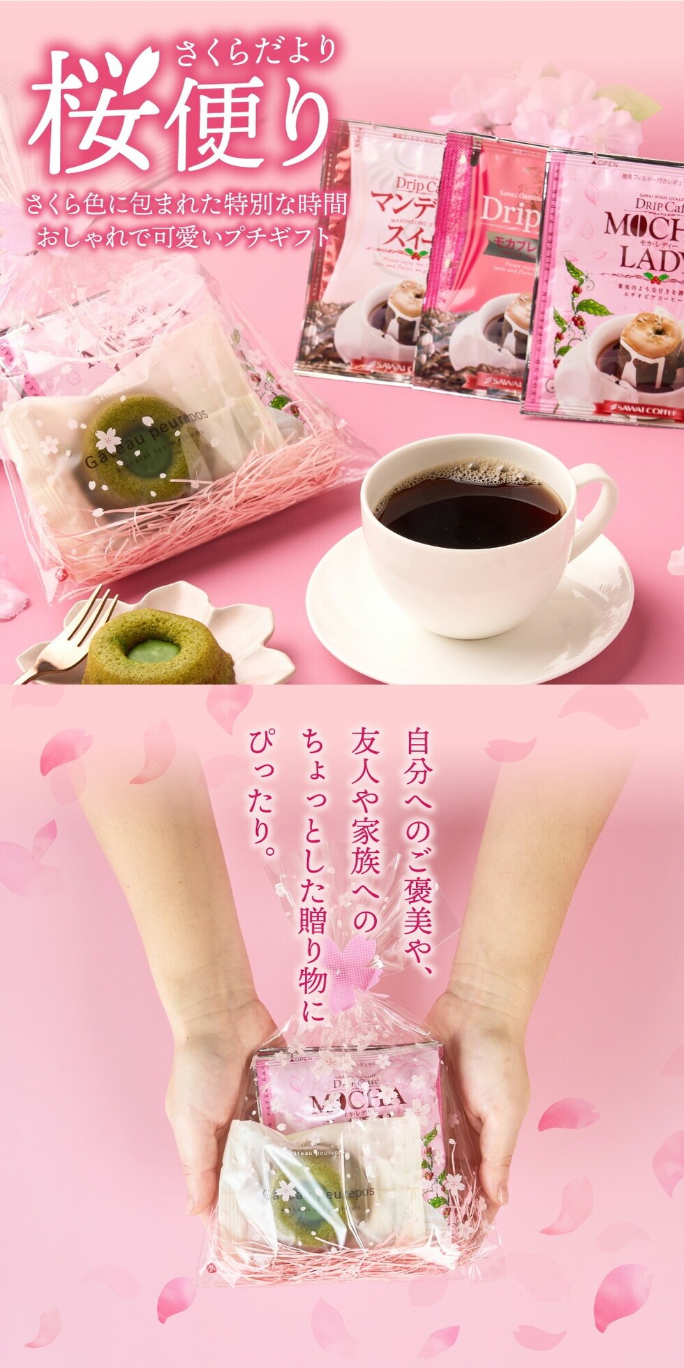 春限定 贈り物 ドリップコーヒー 飲み比べ 個包装 8g 3袋 スイーツ さくらのプチギフト 桜便り かわいい おしゃれ プレゼント ギフト ドリップパック フィナンシェ 澤井珈琲