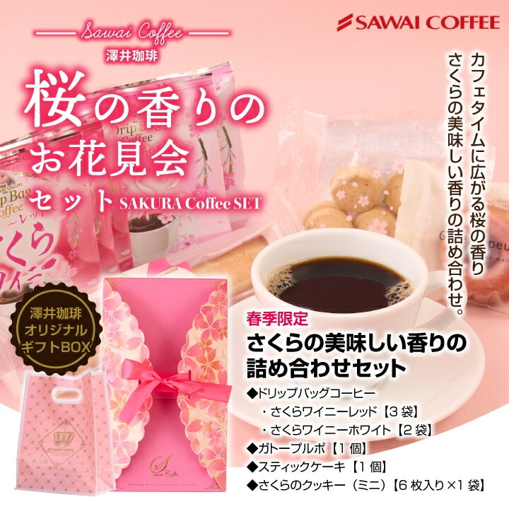 春限定 桜の香りのお花見会セット ※冷凍便同梱不可 コーヒー コーヒーセット 珈琲 スイーツ コーヒーギフト 自家焙煎 プレゼント フレーバーコーヒー さくら 桜 ケーキ クッキー お菓子 送料別