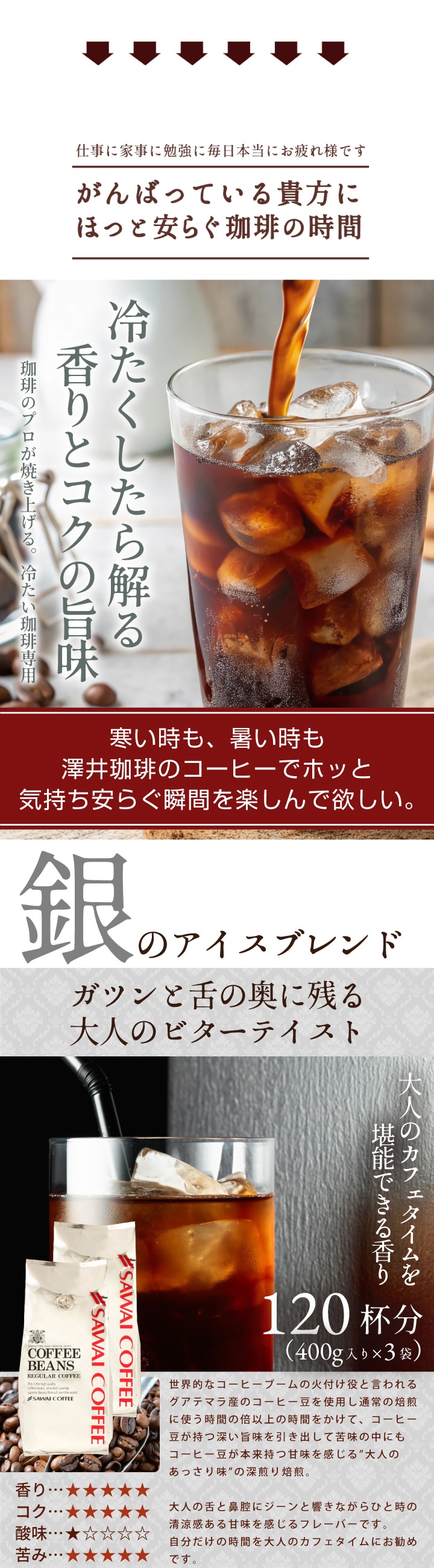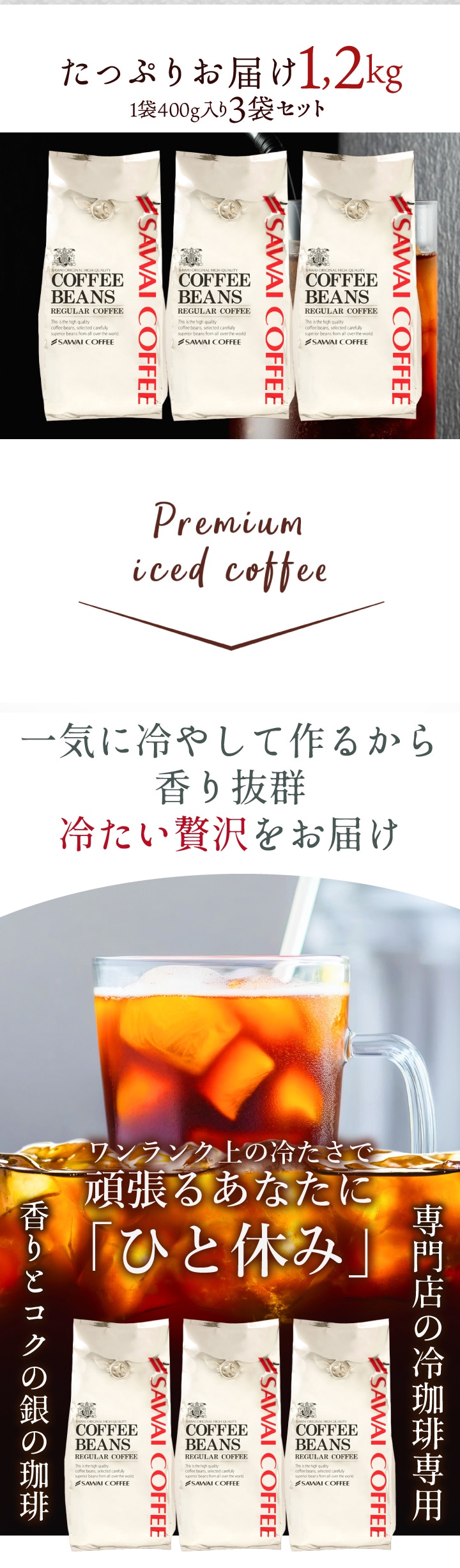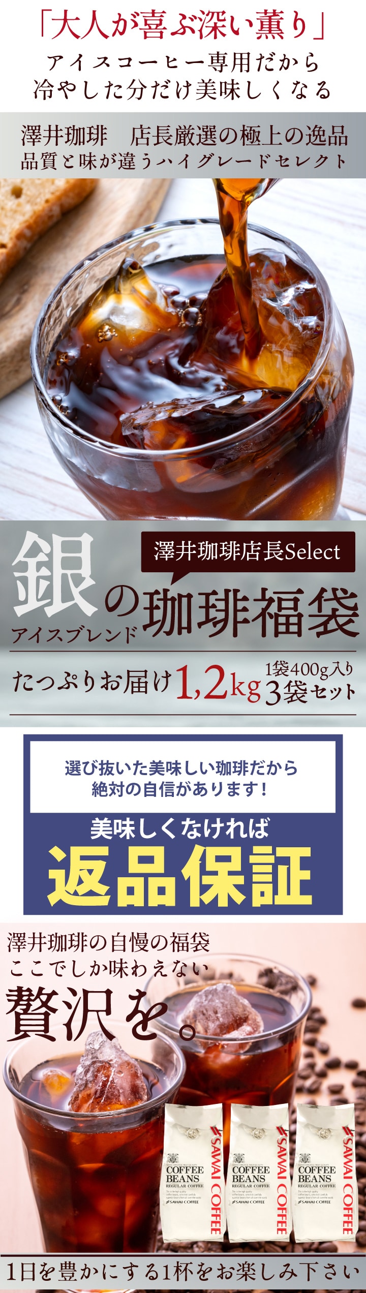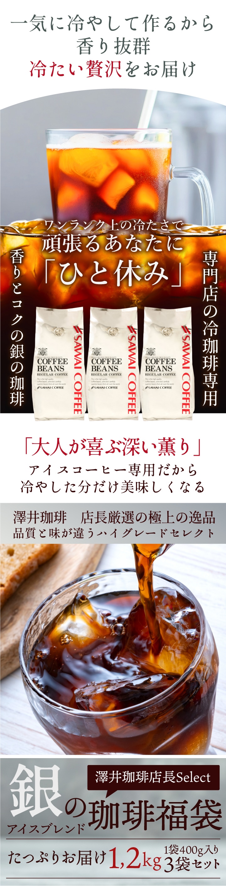 【中細挽き】銀のアイスブレンド アイスコーヒー 粉 1.2kg 400g×3袋 水出し珈琲 120杯分福袋 送料無料 大容量 澤井珈琲