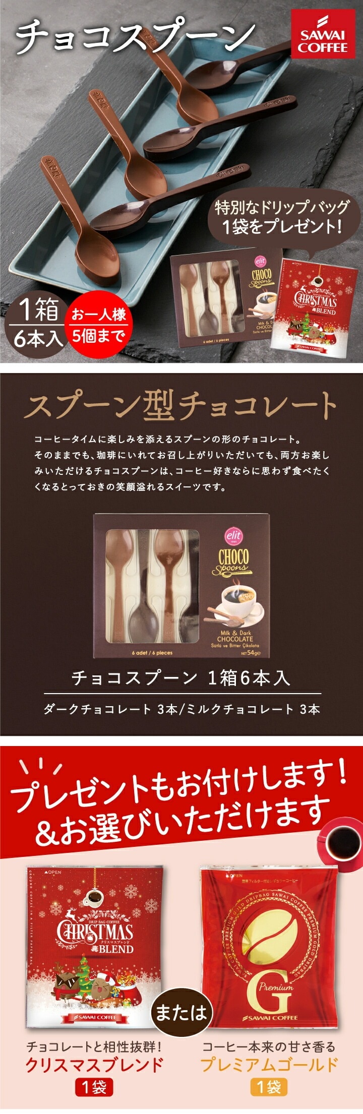 クリスマスブレンド付き チョコレート 大量 会社 職場 おしゃれ スイーツ かわいい 人気 SNS映え スプーンチョコ 1箱 6本入り