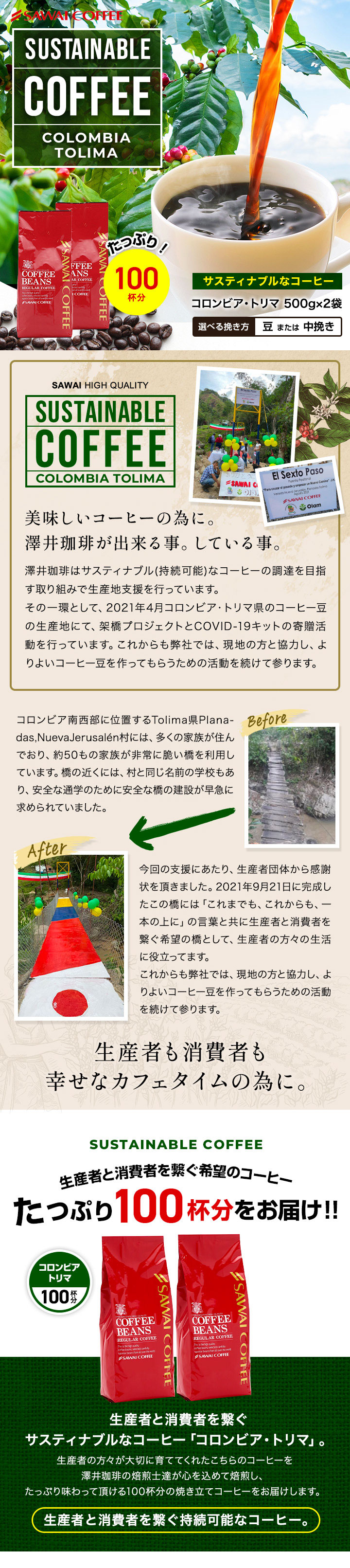 送料無料 サスティナブルなコーヒー コロンビア トリマ 100杯分福袋【豆のまま】(コーヒー/コーヒー豆/珈琲豆/1kg/送料込)