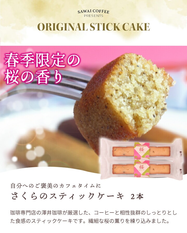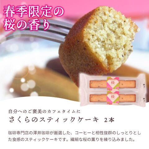 春だけの さくらのスティックケーキ 2本 同梱オススメ プチギフト お菓子 かわいい ギフト コーヒーのお供 春限定 退職 個包装 お礼 おしゃれ かわいい お菓子 美味しい 贈り物 手土産 桜 さくら お返し 送料別