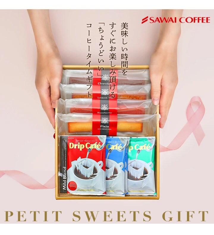 | このギフトセットは、香り豊かな3種類のドリップコーヒーと、しっとりとしたスティックケーキを詰め合わせた、贈り物にぴったりなセットです。コーヒー好きな方に喜ばれ、手軽に特別なコーヒータイムを楽しめる内容になっています。贈る側も贈られる側も嬉しい、ちょうど良いギフトです。 1. 3種類のドリップコーヒーで特別なひととき このギフトセットには、3種類のドリップコーヒーが入っています。それぞれのブレンドが異なる風味を楽しめるので、飲む方の好みに合わせて選ぶことができます。スッキリとしたライトブレンド、甘い香りのマイルドブレンド、そして濃厚なビターブレンドが、特別なコーヒータイムを演出します。お湯を注ぐだけで簡単に楽しめるので、忙しい日でも贅沢なひとときを提供します。 2. しっとりスティックケーキでコーヒータイムをさらに豊かに セットには、コーヒーと相性抜群のスティックケーキが4本入っています。プレーン、レモンティー、ストロベリー、チョコレートと、バラエティ豊かな味が揃っており、どれもコーヒーにぴったりです。しっとりとした食感と豊かな風味が、コーヒーと一緒に楽しむことで、特別な時間をより一層豊かにしてくれます。友人や家族とのティータイムに最適です。 3. 贈り物にぴったりの豪華な包装と手提げ袋付き このギフトセットは、無料で素敵なラッピングが施されており、贈り物としてそのまま渡せる仕様です。オリジナルの包装紙で丁寧に包まれ、さらに手提げ袋も付いているので、プレゼントを用意する手間がかかりません。お祝い、お返し、お土産としても最適なこのギフトは、贈る側も贈られる側も満足できる、ちょうどいい選択です。 |