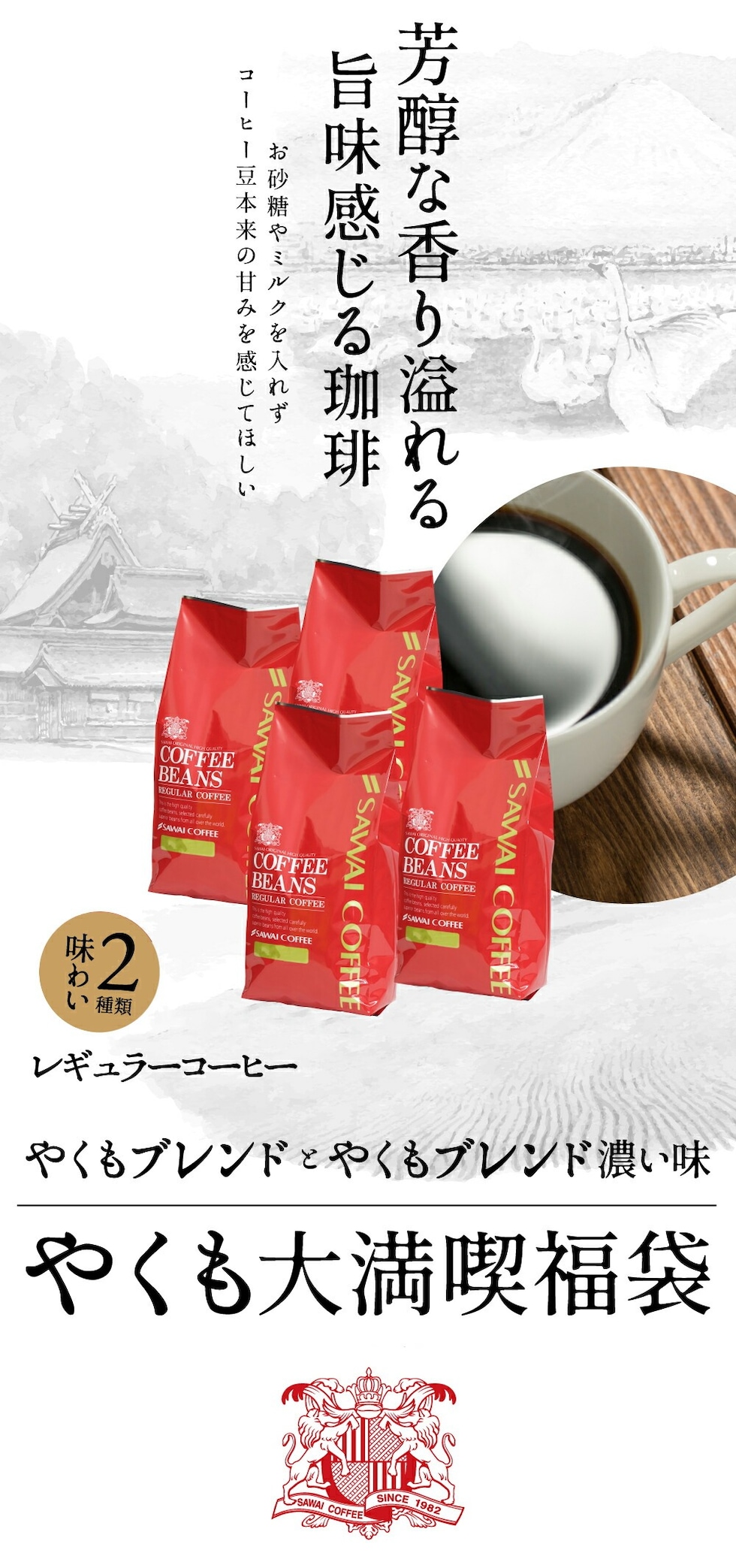 送料無料 一番人気のやくもブレンド200杯分入り 超大入りコーヒー福袋【豆のまま】(コーヒー豆/珈琲豆/送料込)