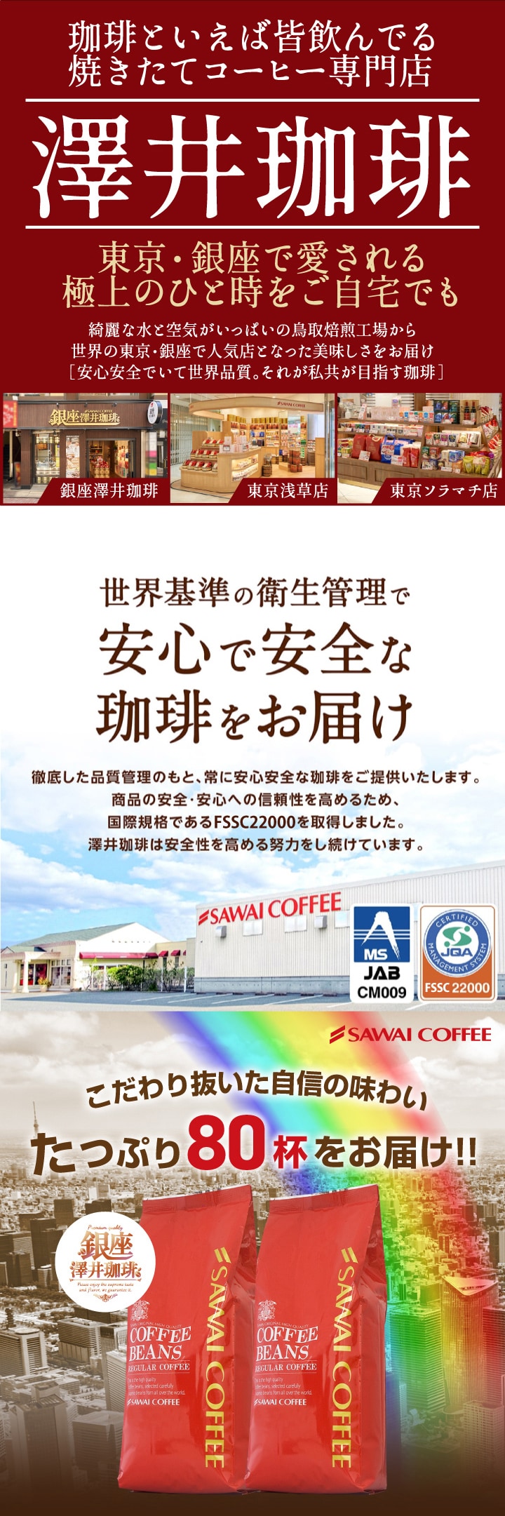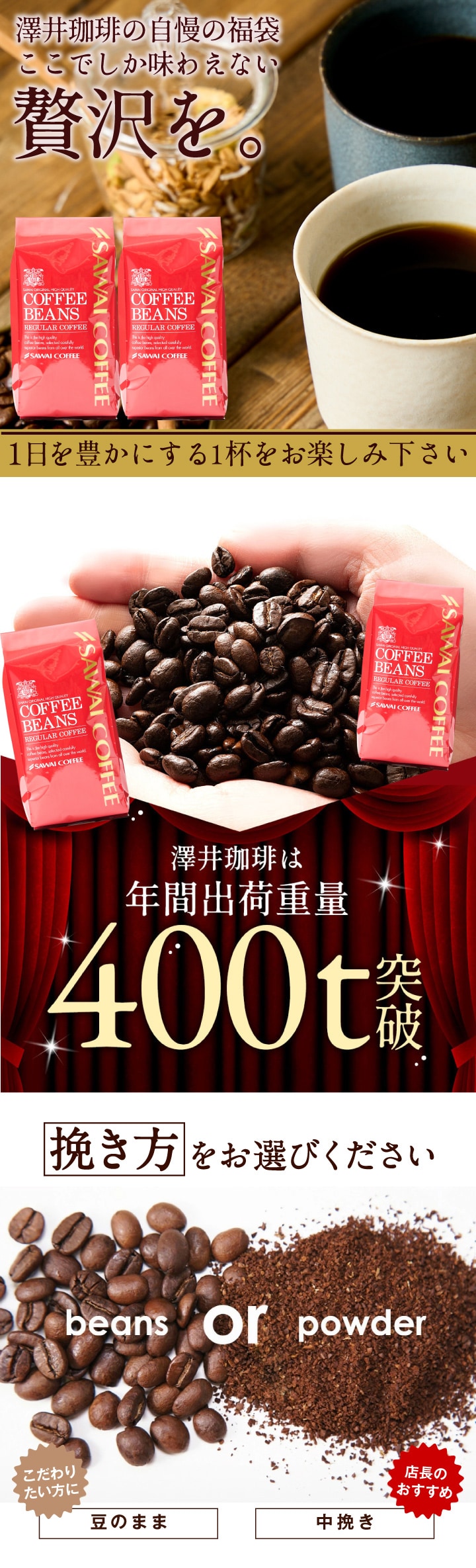 【中挽き】コーヒー コーヒー豆 コーヒー粉 珈琲豆 "創業40年の集大成 特別な記念ブレンド" 澤井珈琲 ブレンド 夢・浪漫 80杯分 400g×2袋 大容量 セット