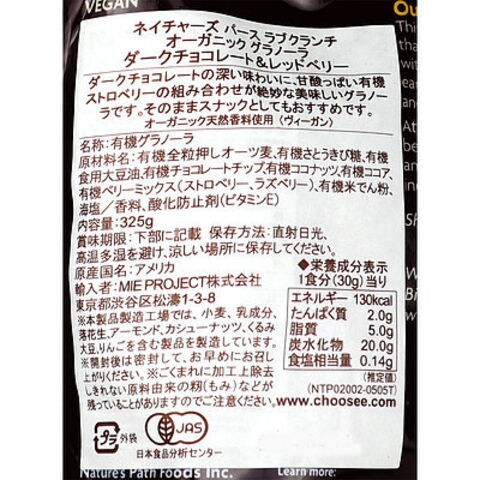 ネイチャーズパース 有機グラノーラダークチョコ&レッドベリー 325g×6袋