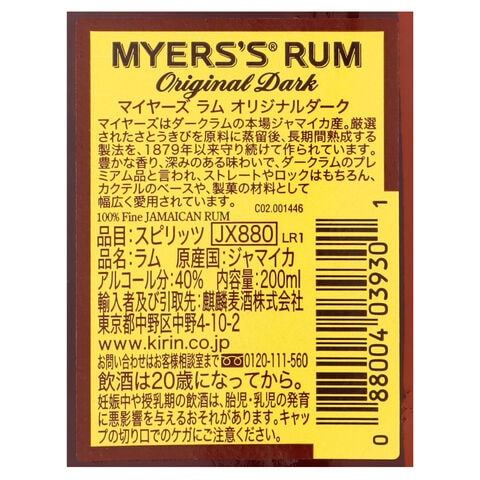 マイヤーズラム〔9301〕 1/4 40゜ 200ML