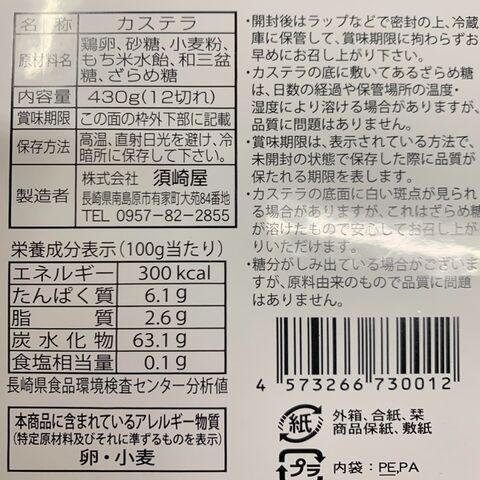 【お取り寄せ】【W】須崎屋 和三盆糖入 長崎五三焼かすてら 1本入 | 沖縄・離島配送不可