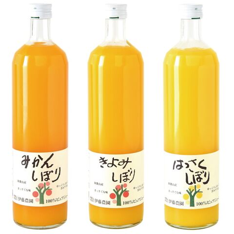 | 商品内容 | 100%ピュアジュースみかん750ml×1本 100%ピュアジュースきよみ750ml×1本 100%ピュアジュースはっさく750ml×1本 計3本 |
