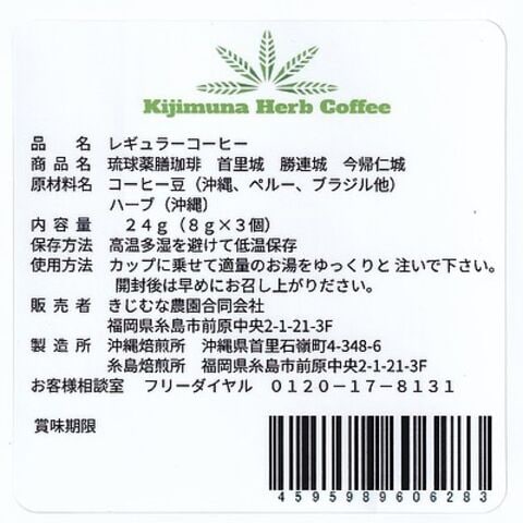 | 商品内容 | きじむなファーム 琉球薬膳珈琲 3種セット |
