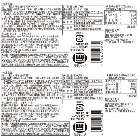 お好み焼豚玉に、もちとチーズが入ったもちチーズ、あっさり醤油味のねぎ焼、だしの風味が効いたソースたこ焼などバラエティも豊かな商品をセットにしました。電子レンジで簡単にお召し上がり頂けます。