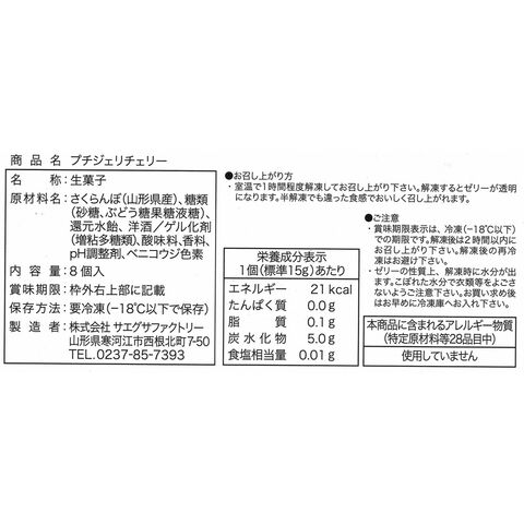 | 商品内容 | プチジェリチェリー8粒入 1箱 |