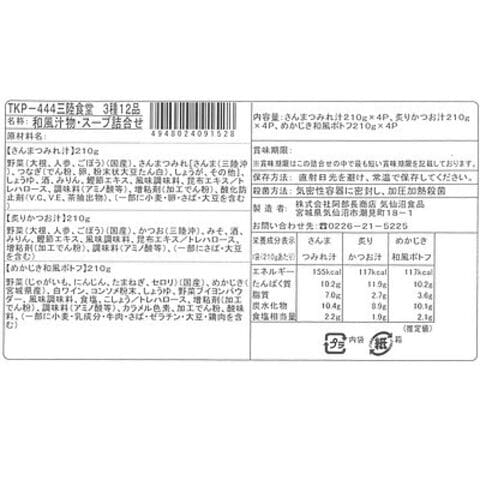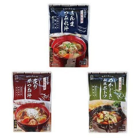 | 商品内容 | ・さんまつみれ汁×4個 ・炙りかつお汁×4個 ・メカジキ和風ポトフ×4個 |